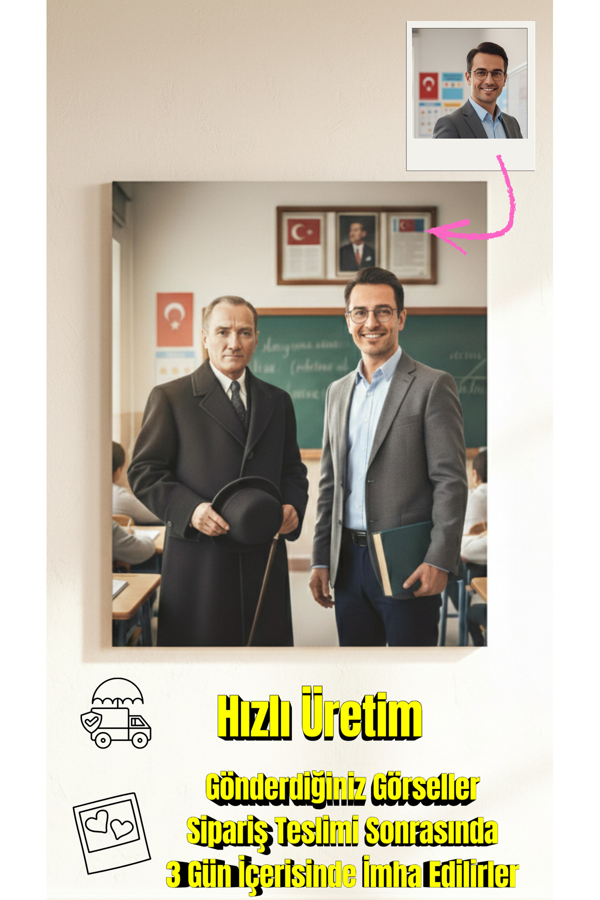 Kişiye Özel Öğretmenler Günü Hediyesi Kanvas Tablo | Atatürk ile Aynı Karede Tasarım Kişiye Özel Öğretmenler Günü Hediyesi Kanvas Tablo | Atatürk ile Aynı Karede Tasarım 70 x 100