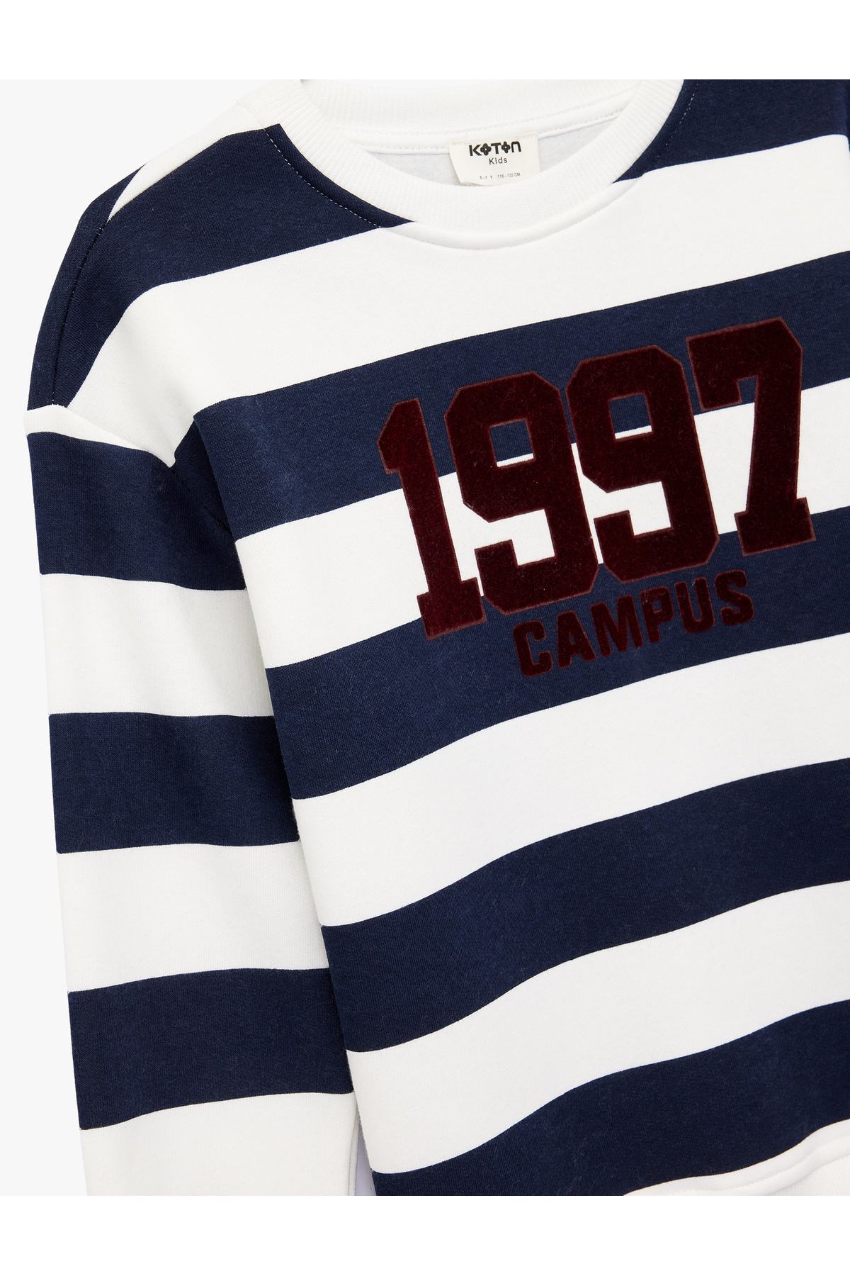 Baskılı Uzun Kollu Bisiklet Yaka Çizgili Sweatshirt Baskılı Uzun Kollu Bisiklet Yaka Çizgili Sweatshirt 6WKG10348AK 13-14 Yaş