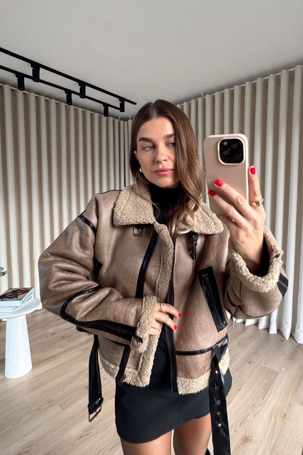 Kürk Yaka Oversize Kadın Süet Mont Kürk Yaka Oversize Kadın Süet Mont W56119Z8-Liwensa XL