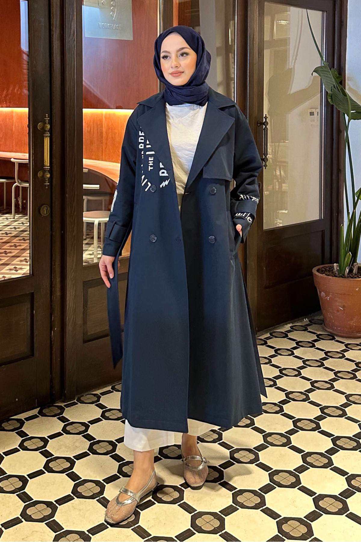 Zayne Kol Kemerli Trençkot - Lacivert Zayne Kol Kemerli Trençkot - Lacivert 32139 L