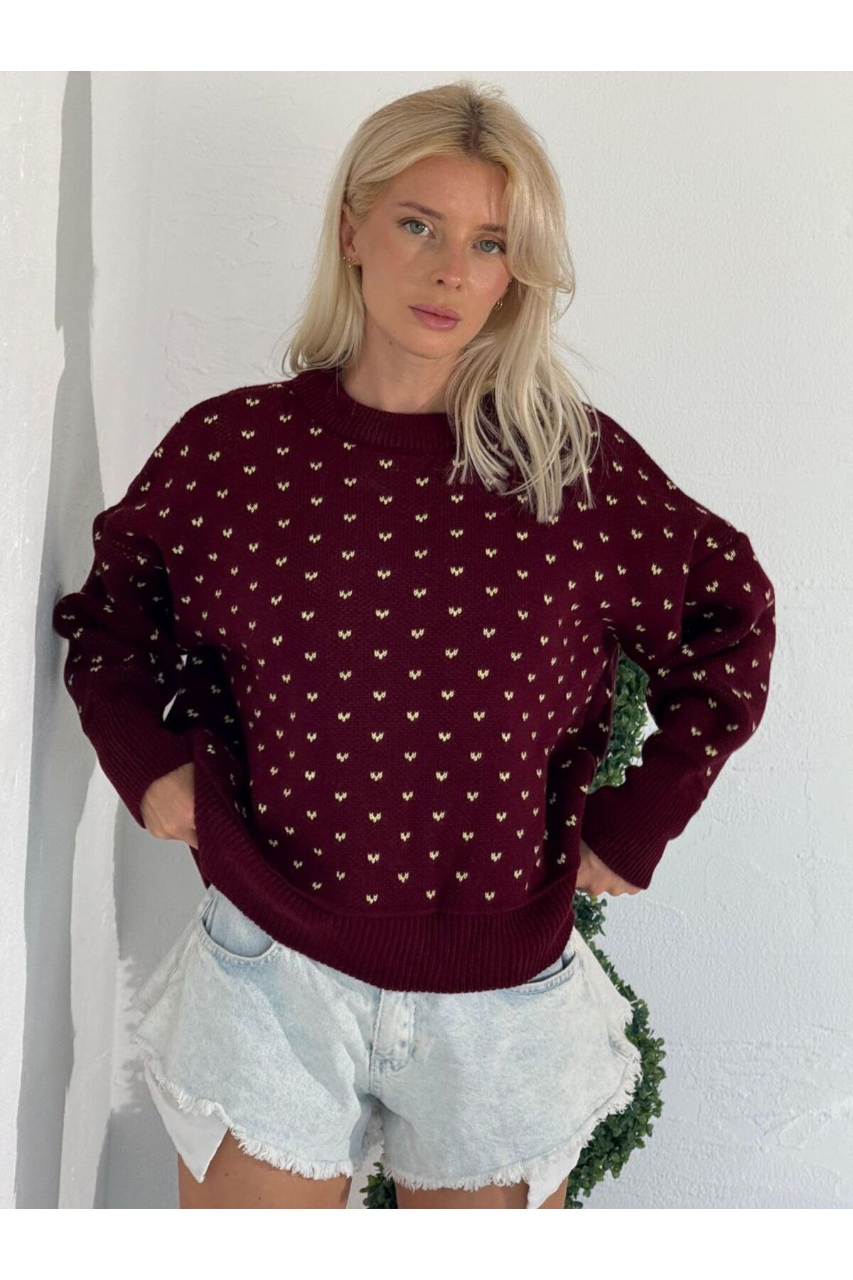 Kadın Desenli Oversize Triko Kazak Rahat Bisiklet Yaka Uzun Kollu Günlük Kullanım İçin Kadın Desenli Oversize Triko Kazak Rahat Bisiklet Yaka Uzun Kollu Günlük Kullanım İçin T10002 Standart