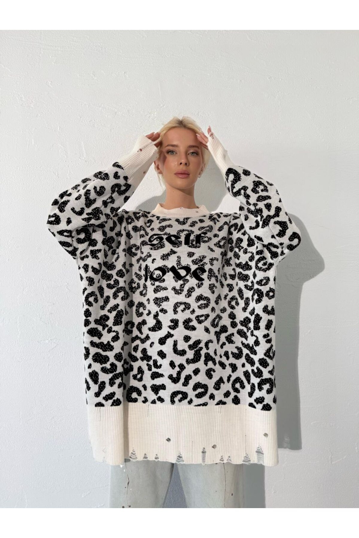 Kadın Leopar Desenli Oversize Triko Kazak Rahat Kalıp Uzun Kollu Kadın Leopar Desenli Oversize Triko Kazak Rahat Kalıp Uzun Kollu T10003 Standart