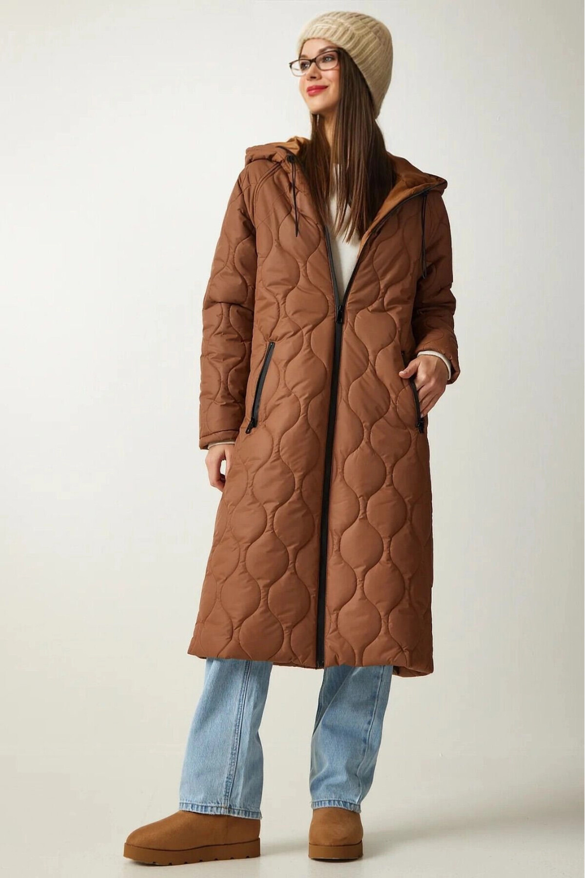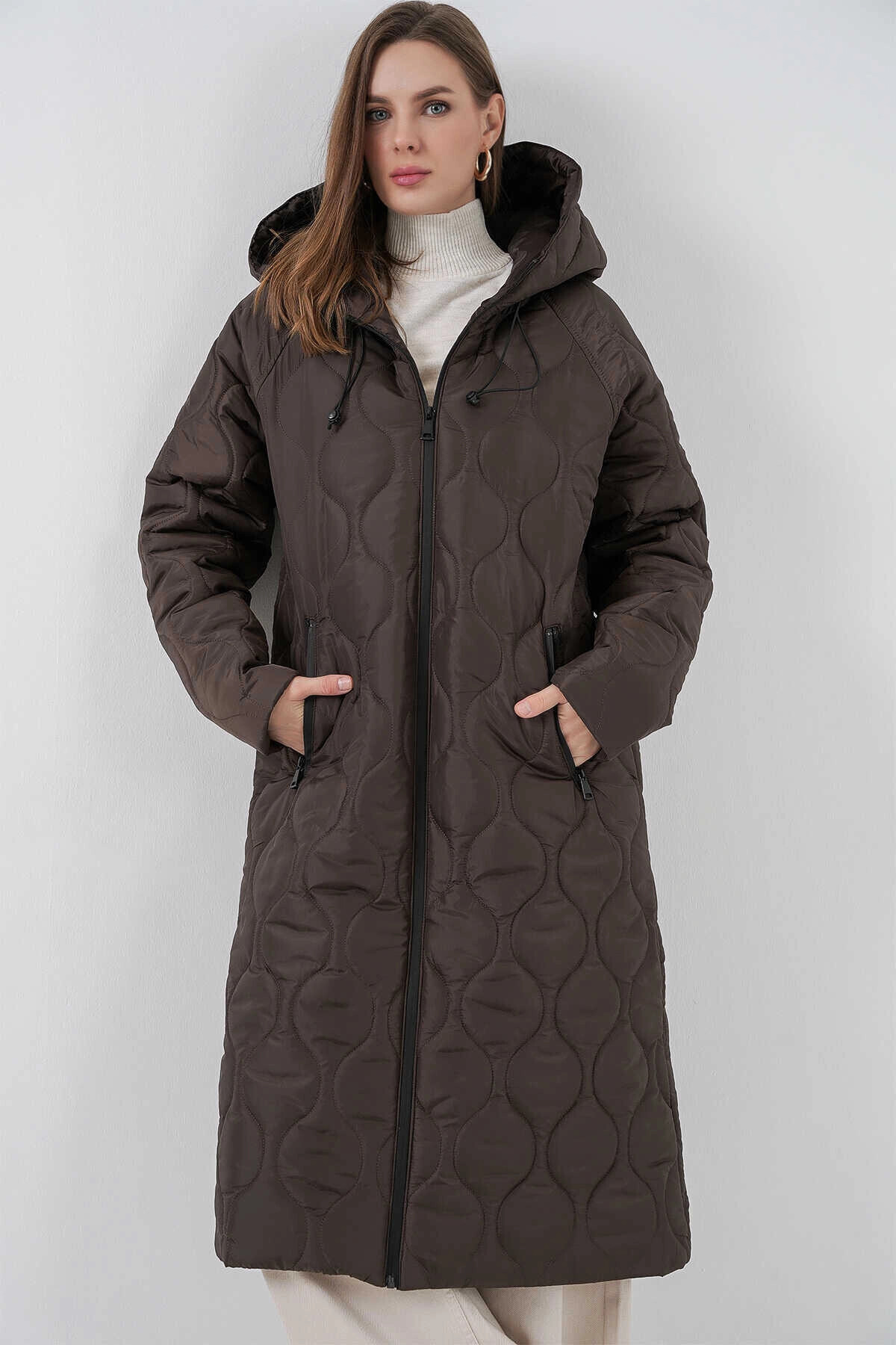 Kadın Kahverengi Kapüşonlu Kapitone Uzun Şişme Mont HZL24W-BD151771 Kadın Kahverengi Kapüşonlu Kapitone Uzun Şişme Mont HZL24W-BD151771 42