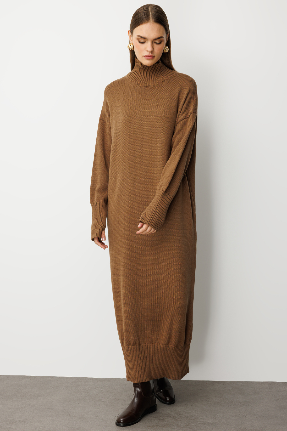 Kahve Oversize Dik Yaka Karamel Rengi Uzun Kalın Triko Elbise Kahve Oversize Dik Yaka Karamel Rengi Uzun Kalın Triko Elbise M1MZ1030120230 Standart