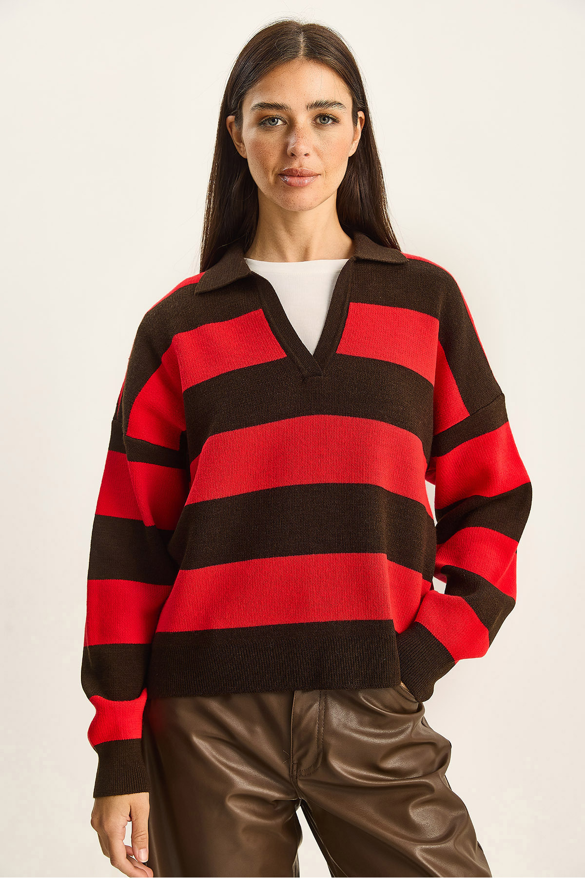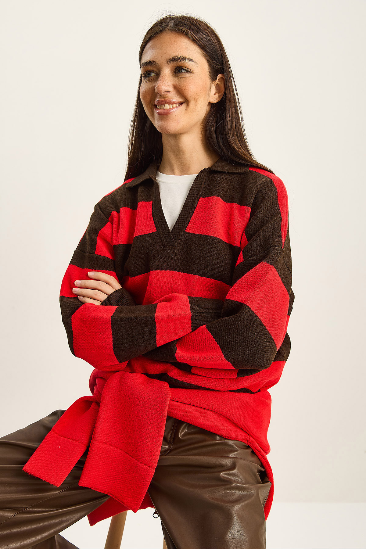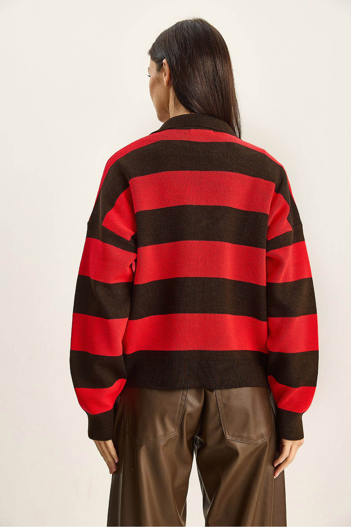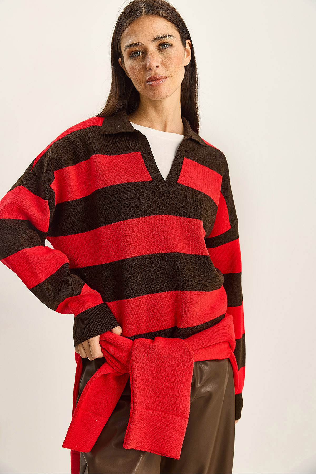 Kadın Çizgili Polo Yaka Triko Kazak TK251122 60283700 Kadın Çizgili Polo Yaka Triko Kazak TK251122 60283700 Standart