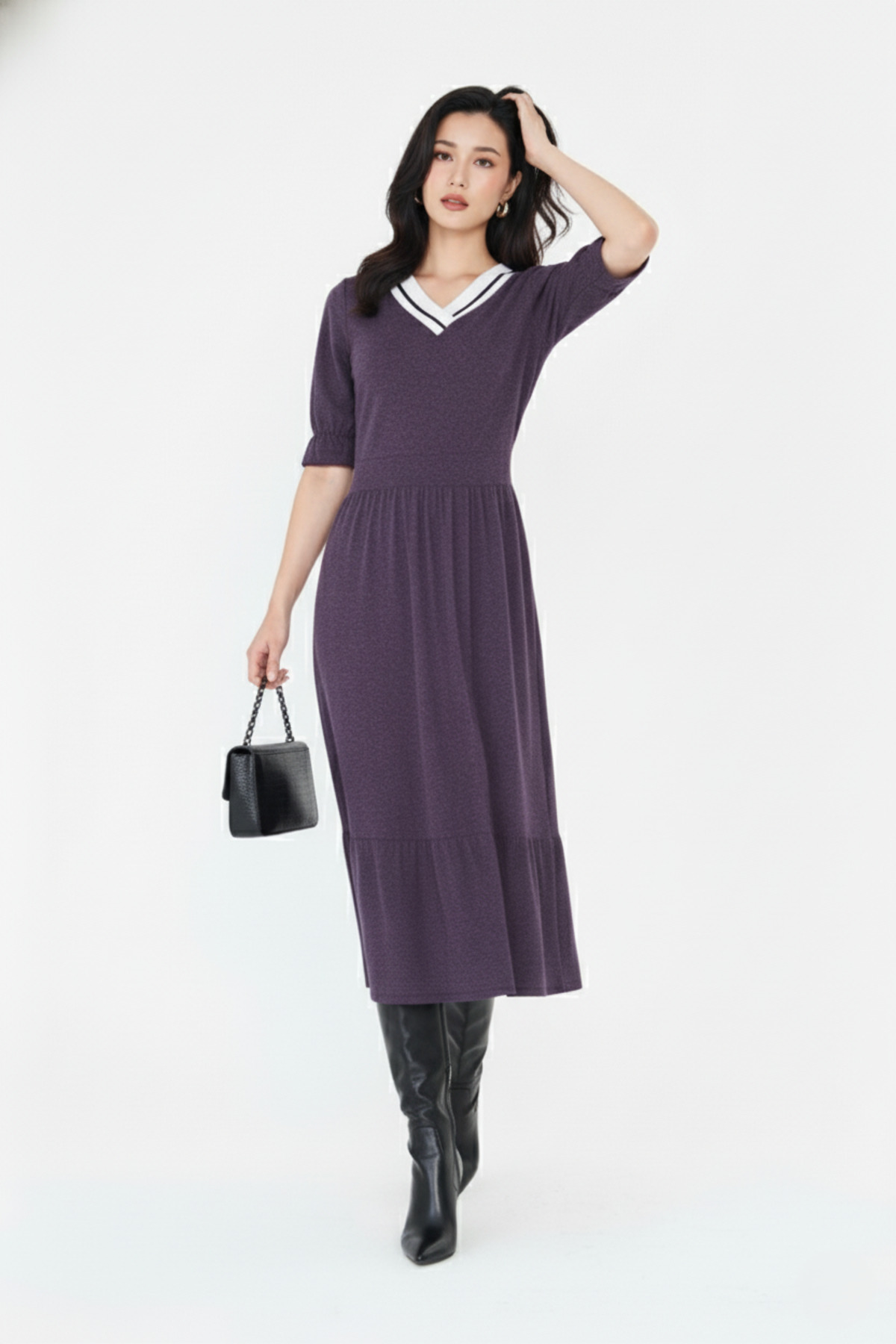 Kadın Kısa Kollu Likralı Örme Viskon V Yaka Elbise Kadın Kısa Kollu Likralı Örme Viskon V Yaka Elbise SEREL-S00251 2XL