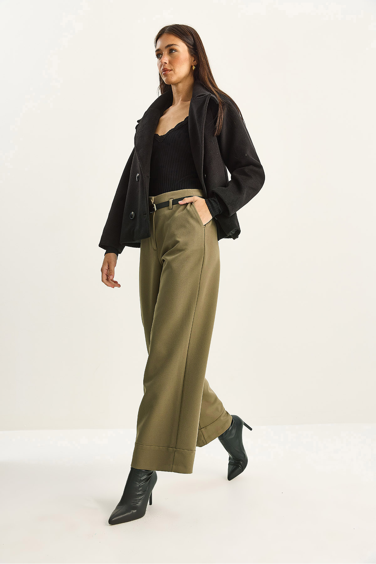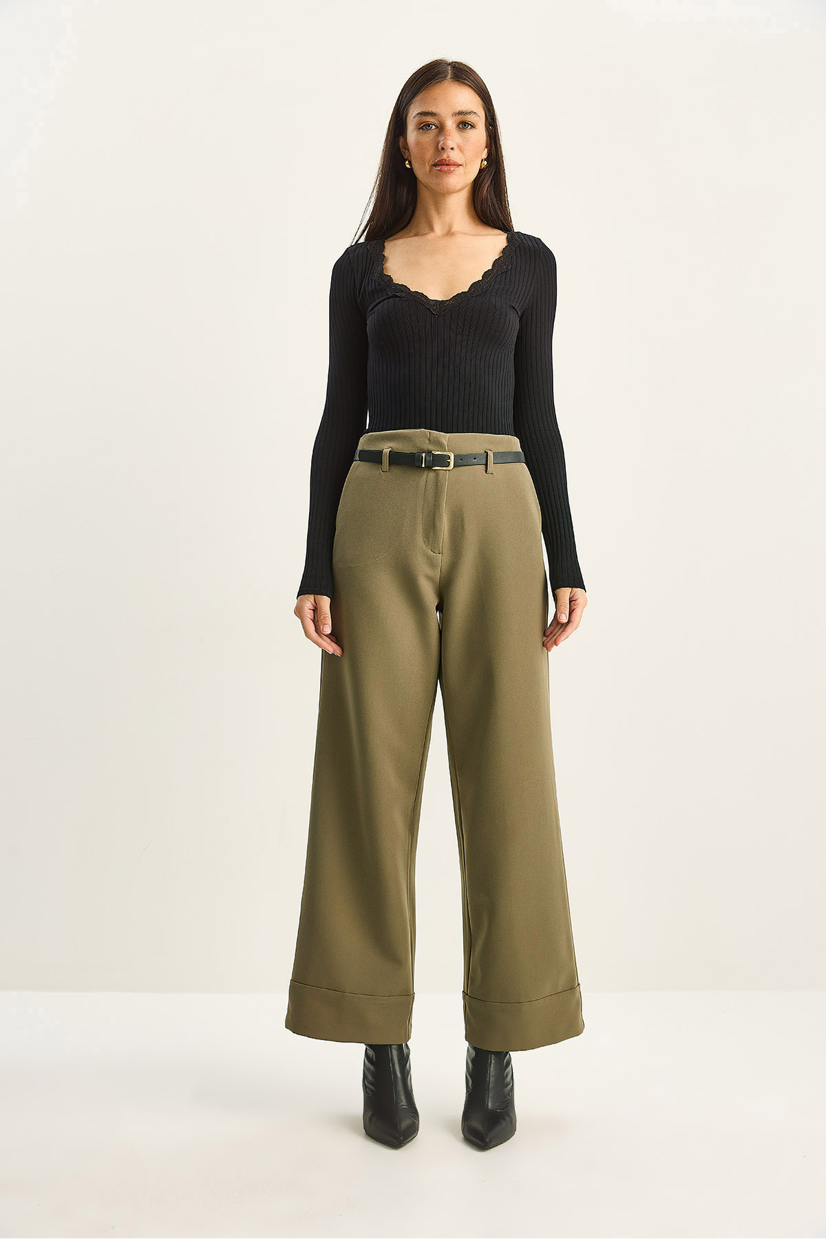 Kadın Yüksek Bel Kemerli Cep Detaylı Kıvrık Paça Pantolon 0309 60283790 Kadın Yüksek Bel Kemerli Cep Detaylı Kıvrık Paça Pantolon 0309 60283790 XL