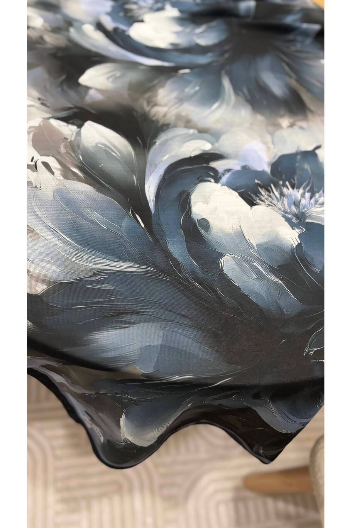 Aura Serisi Çiçekli Desen Pamuklu Dijital Soft Şal - Okyanus Mavisi Aura Serisi Çiçekli Desen Pamuklu Dijital Soft Şal - Okyanus Mavisi 75 x 190