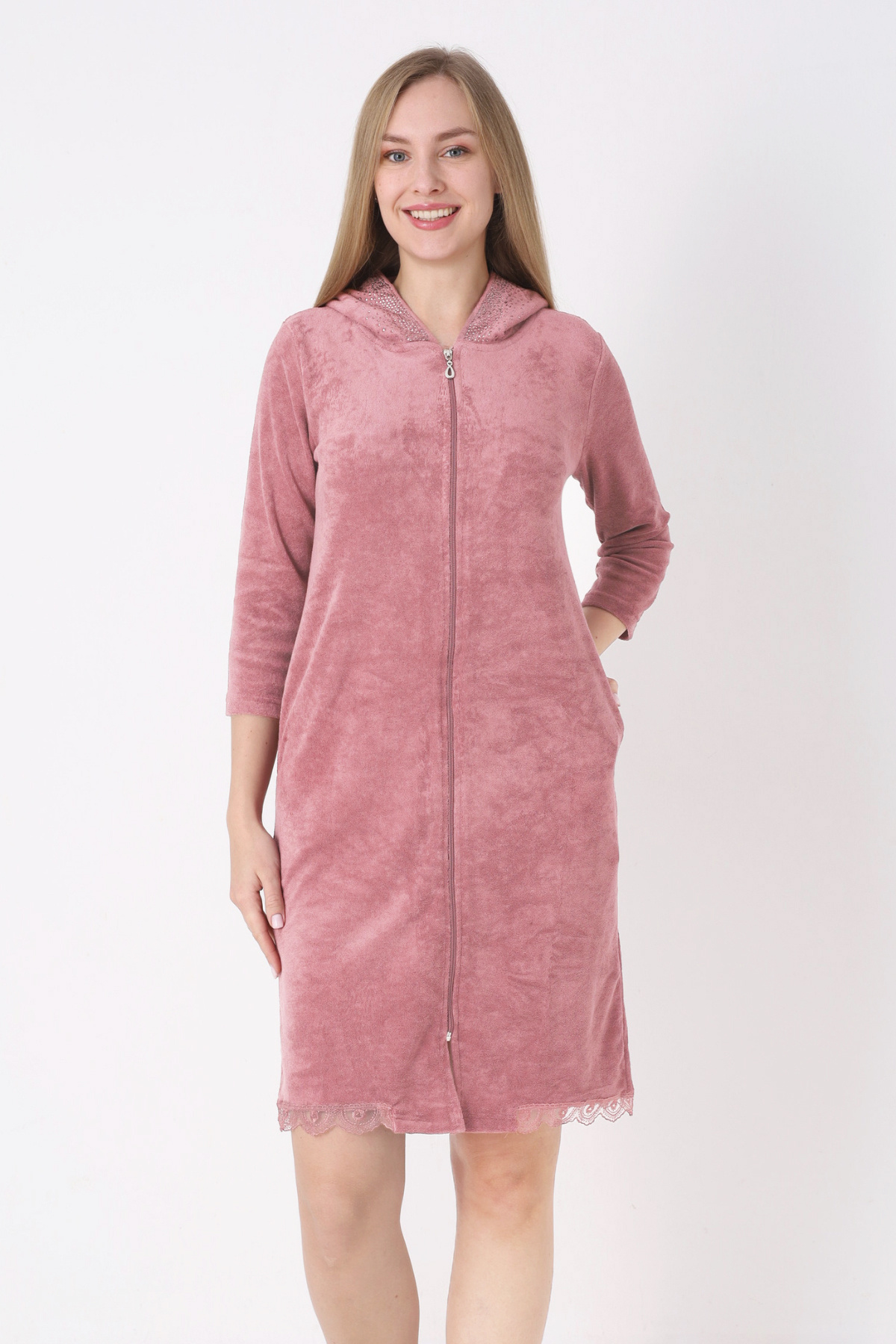 Antrasit Kapüşonlu Fermuarlı Cepli Taşlı Truvakar Kollu Pamuklu Havlu Elbise Antrasit Kapüşonlu Fermuarlı Cepli Taşlı Truvakar Kollu Pamuklu Havlu Elbise 22038 XL