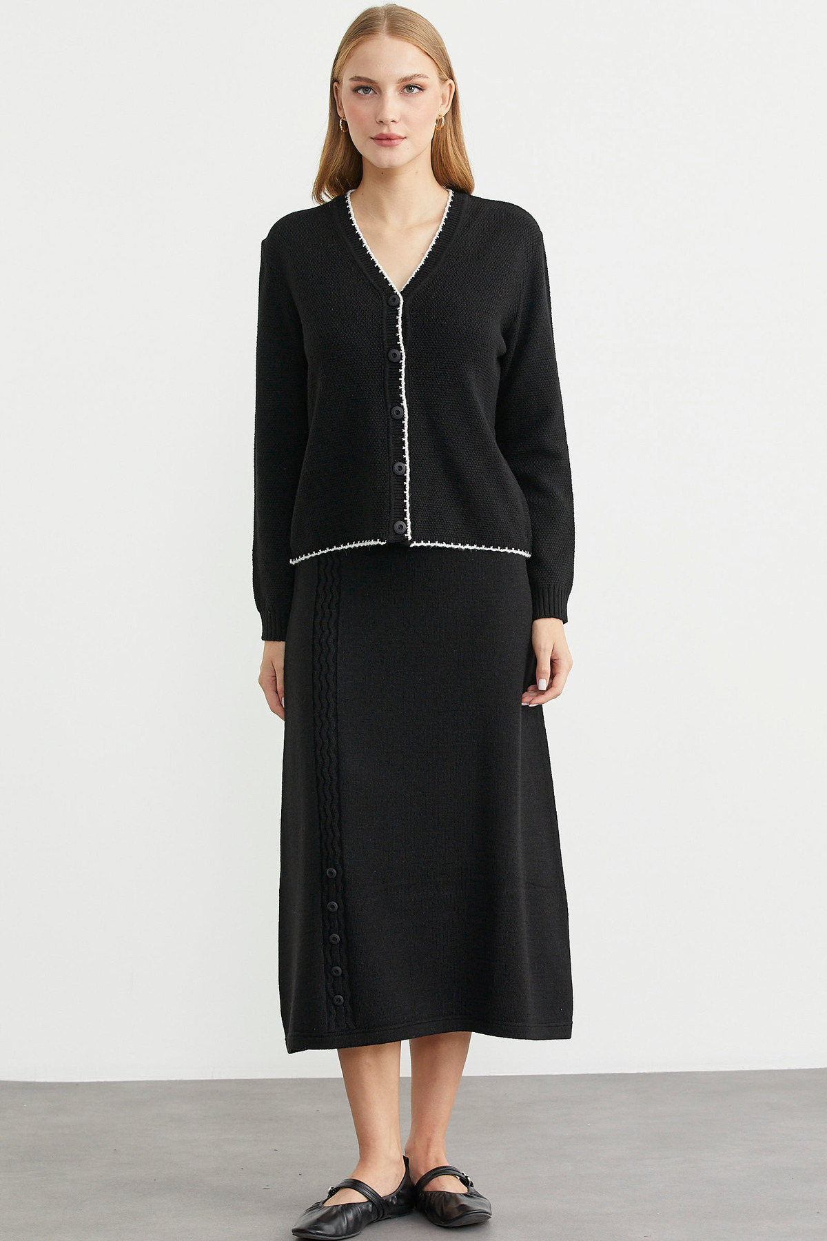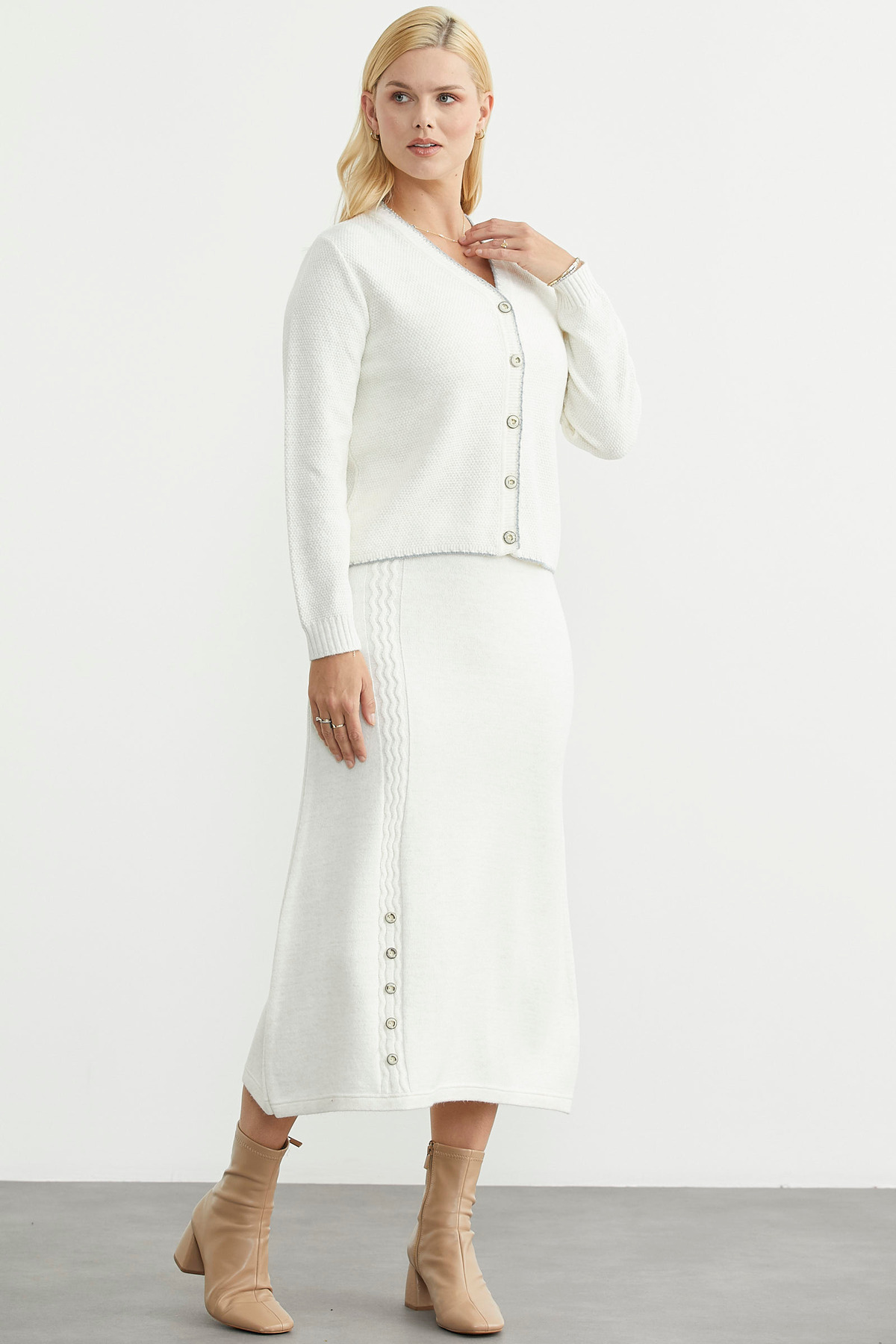 Kloş Etek Hırka Triko Takım - Kemik Kloş Etek Hırka Triko Takım - Kemik 25K2138-34540.0001 L