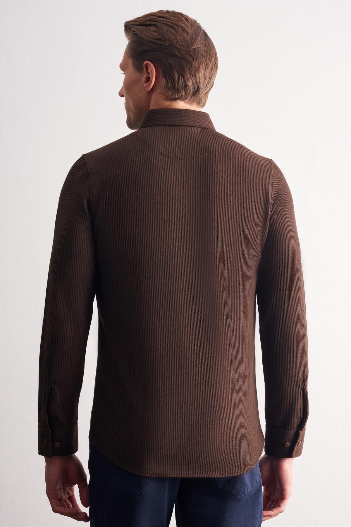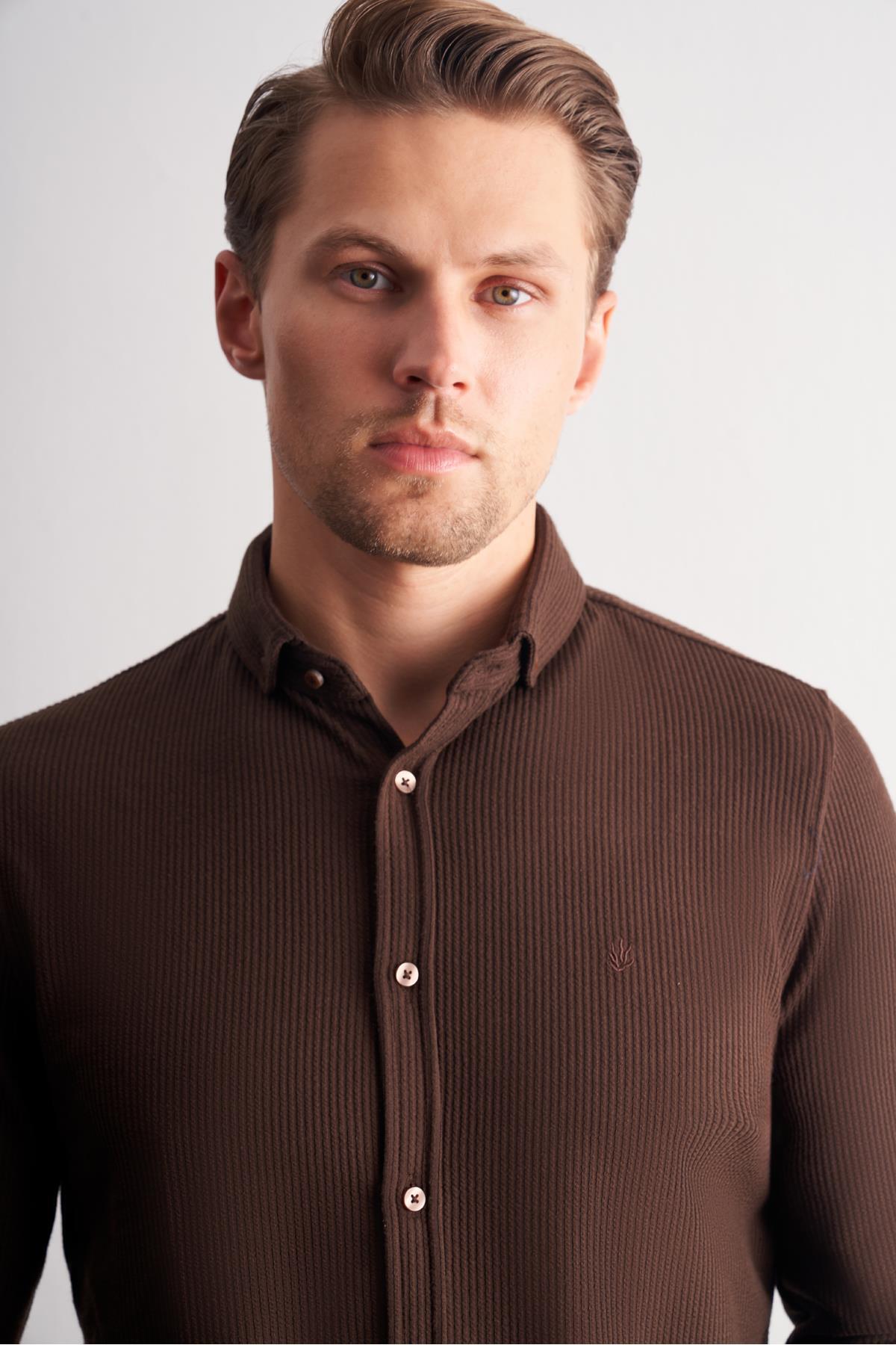 Koyu Kahverengi Smart Düğmeli Yaka Uzun Kol Cepsiz Slim Fit Casual Gömlek 1004255169 Koyu Kahverengi Smart Düğmeli Yaka Uzun Kol Cepsiz Slim Fit Casual Gömlek 1004255169 2XL