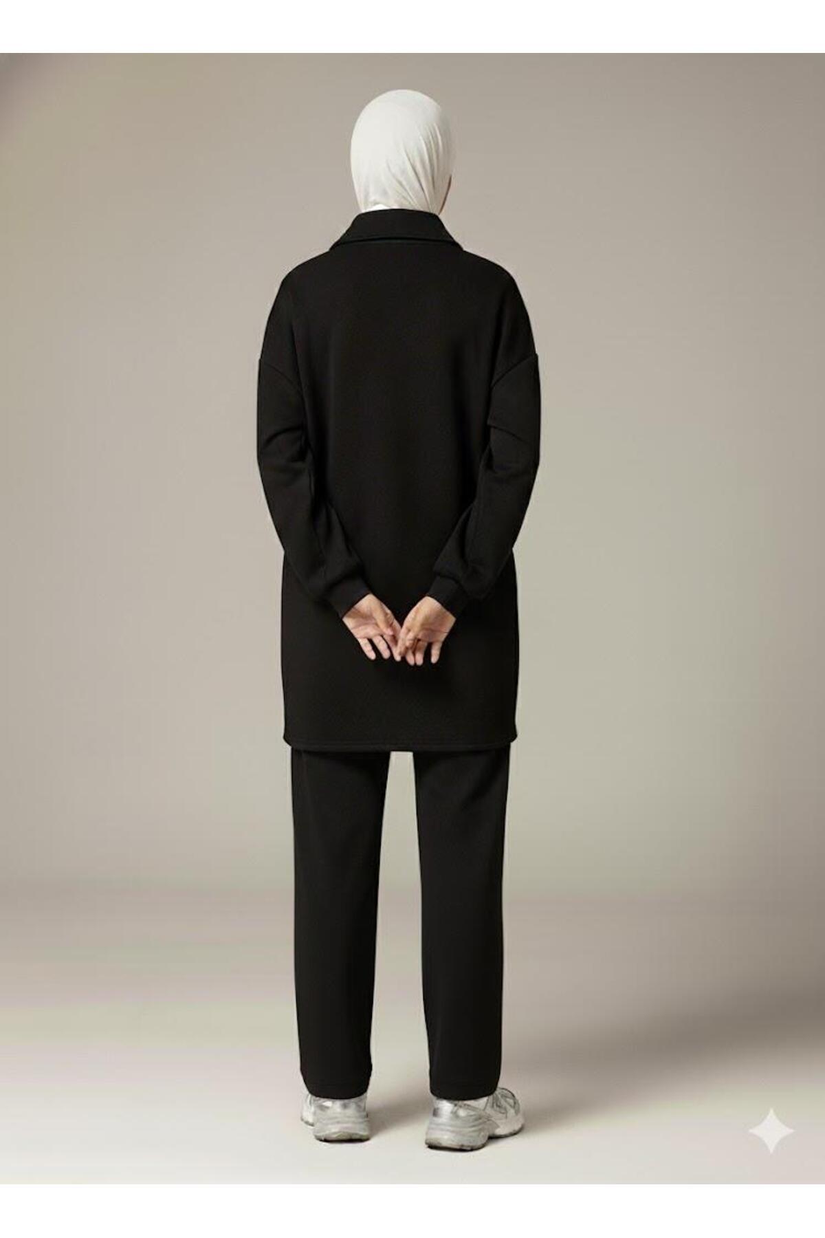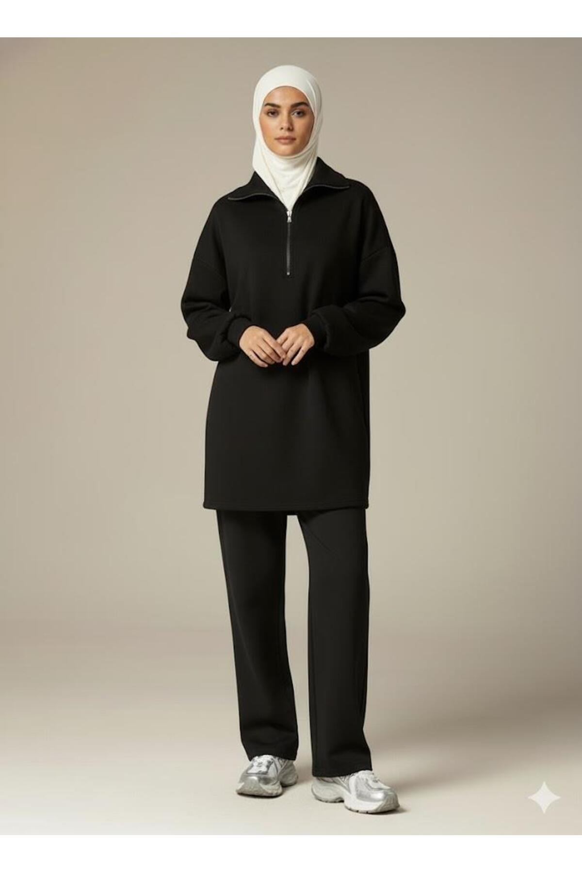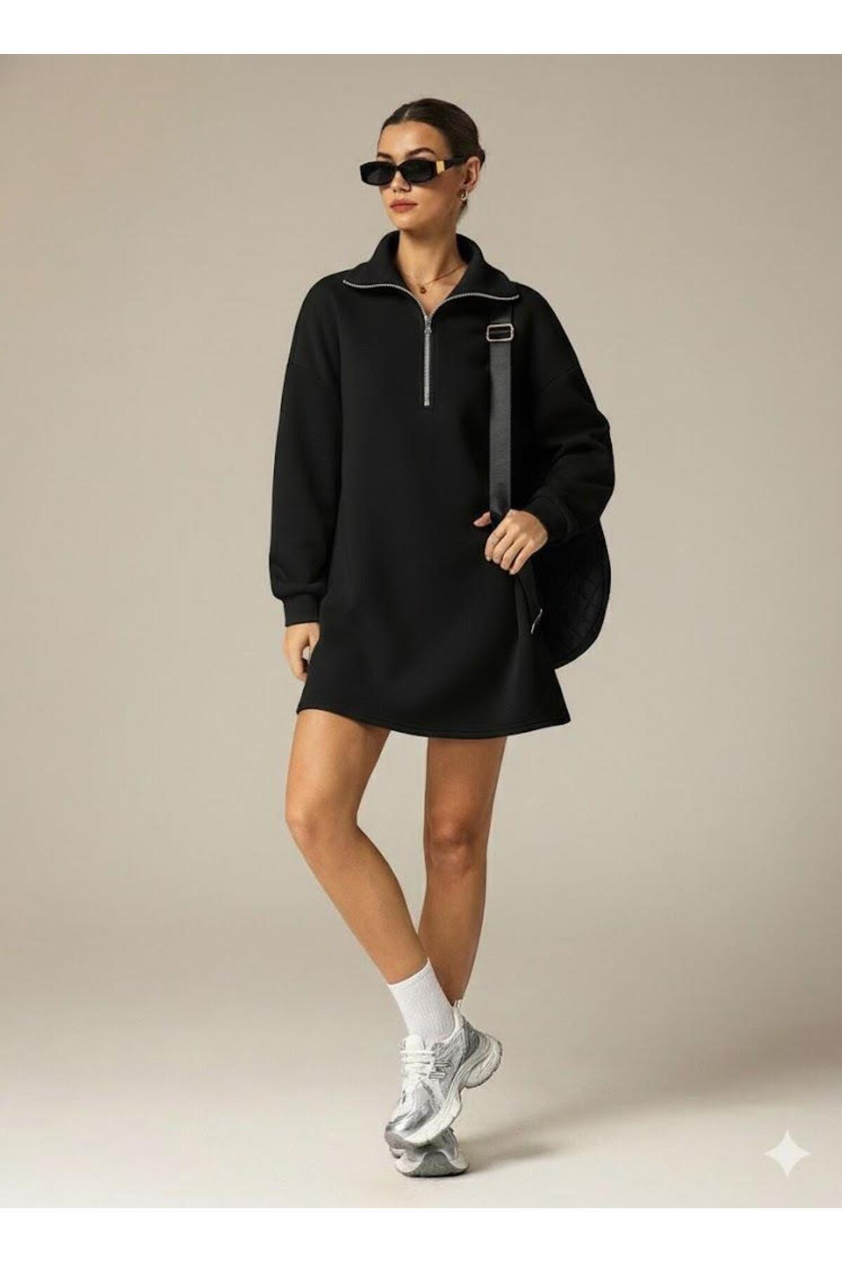 3 İplik Şardonlu Siyah Oversize Fermuarlı Tunik Sweatshirt - Günlük Spor Elbise 3 İplik Şardonlu Siyah Oversize Fermuarlı Tunik Sweatshirt - Günlük Spor Elbise AFRITSAC XL