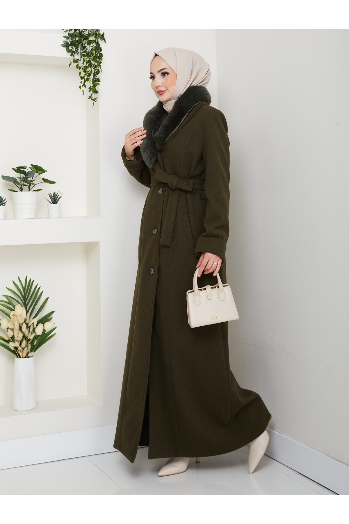 KADIN YENİ SEZON KRUVAZE YAKA DÜĞMELİ YAKASI KÜRKLÜ KUŞAKLI TAM BOY KAŞE KABAN KADIN YENİ SEZON KRUVAZE YAKA DÜĞMELİ YAKASI KÜRKLÜ KUŞAKLI TAM BOY KAŞE KABAN YAKASI KÜRKLÜ UZUN 48