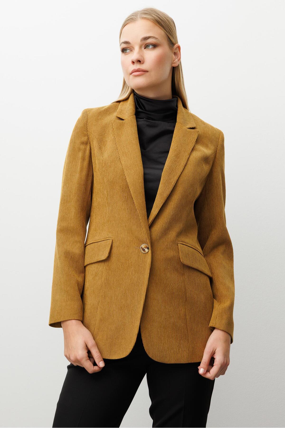 Modailgi Fitilli Kadife Tek Düğme Klasik Ceket Hardal Modailgi Fitilli Kadife Tek Düğme Klasik Ceket Hardal ILG260CKT70045 46