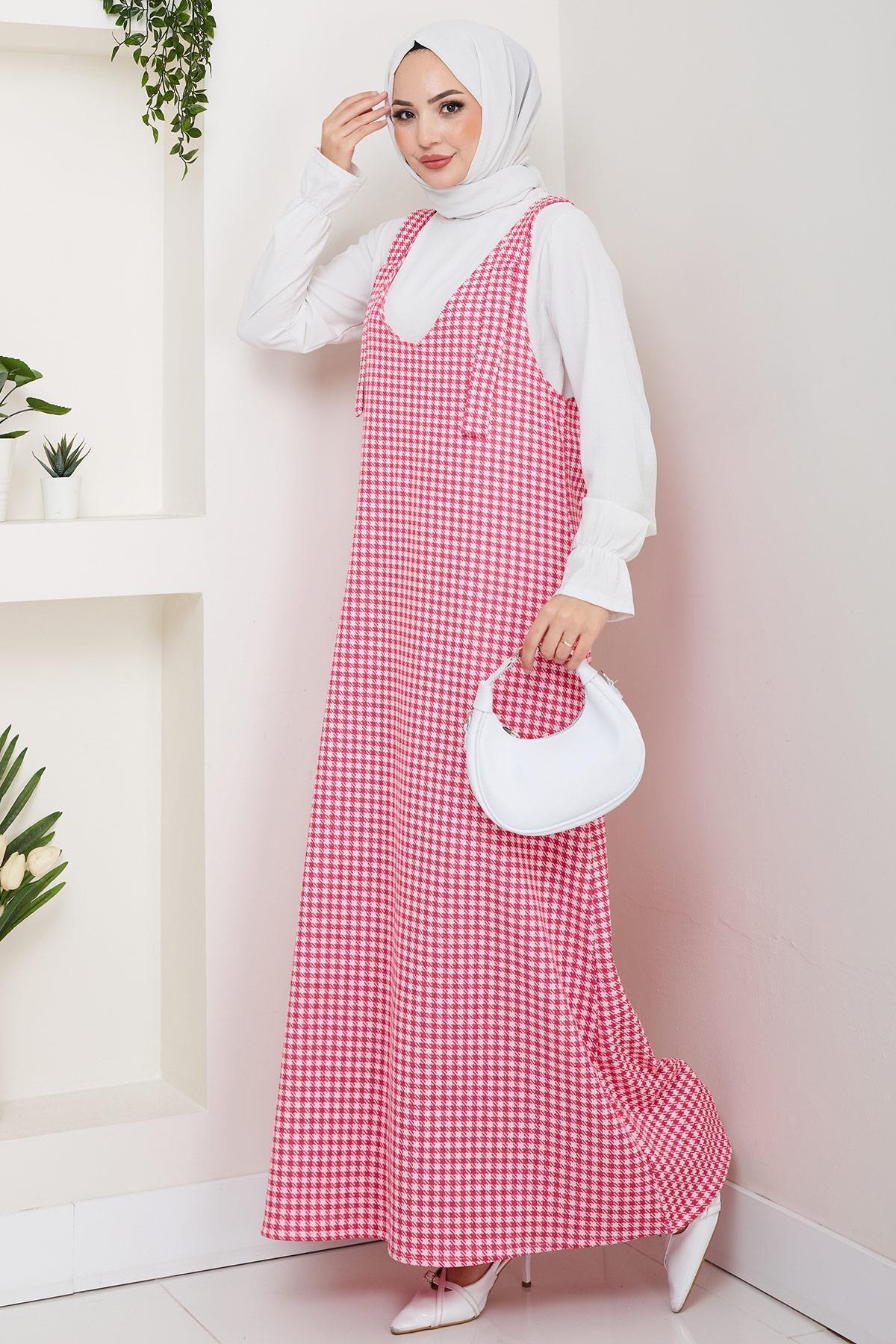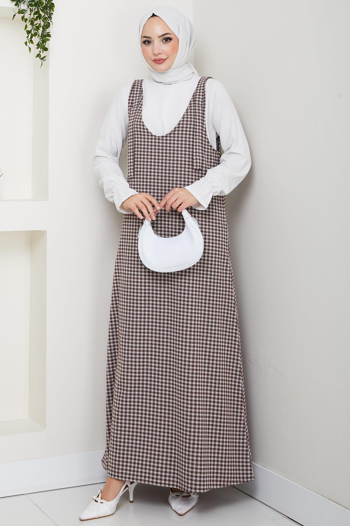 Kaz Ayağı Desen Jile Elbise Siyah HM2865 Kaz Ayağı Desen Jile Elbise Siyah HM2865 48