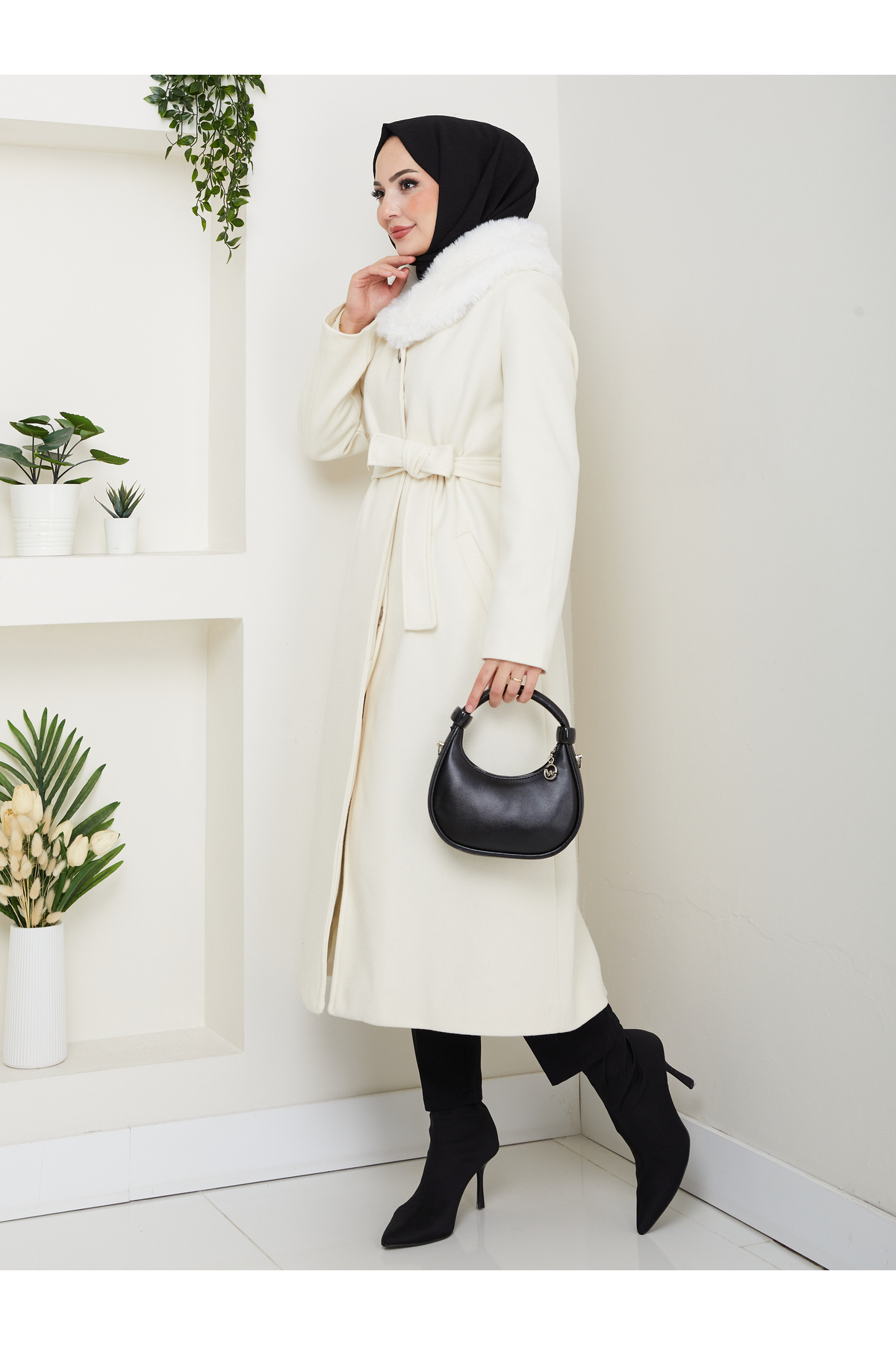 KADIN YENİ SEZON KRUVAZE YAKA DÜĞMELİ YAKASI KÜRKLÜ KUŞAKLI DİZ ALTI KAŞE KABAN KADIN YENİ SEZON KRUVAZE YAKA DÜĞMELİ YAKASI KÜRKLÜ KUŞAKLI DİZ ALTI KAŞE KABAN KISA YAKASI KÜRKLÜ 48