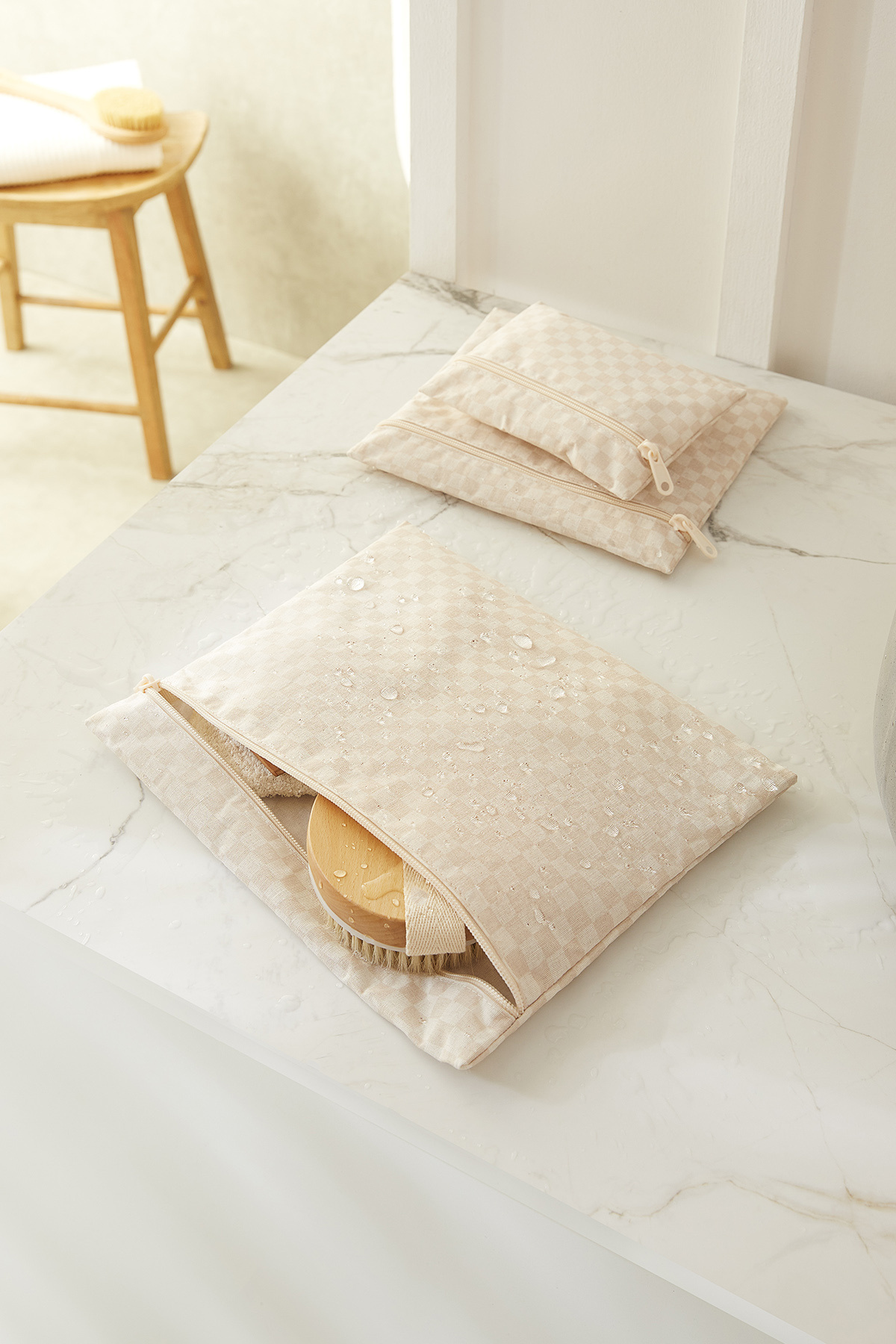 3'lü Su Geçirmez Pvc Astarlı Bej Dama Desen Mayo Islak Kuru Kirli Temiz Çamaşır Çantası 3'lü Su Geçirmez Pvc Astarlı Bej Dama Desen Mayo Islak Kuru Kirli Temiz Çamaşır Çantası OCH.017.BBG.002 تک سایز