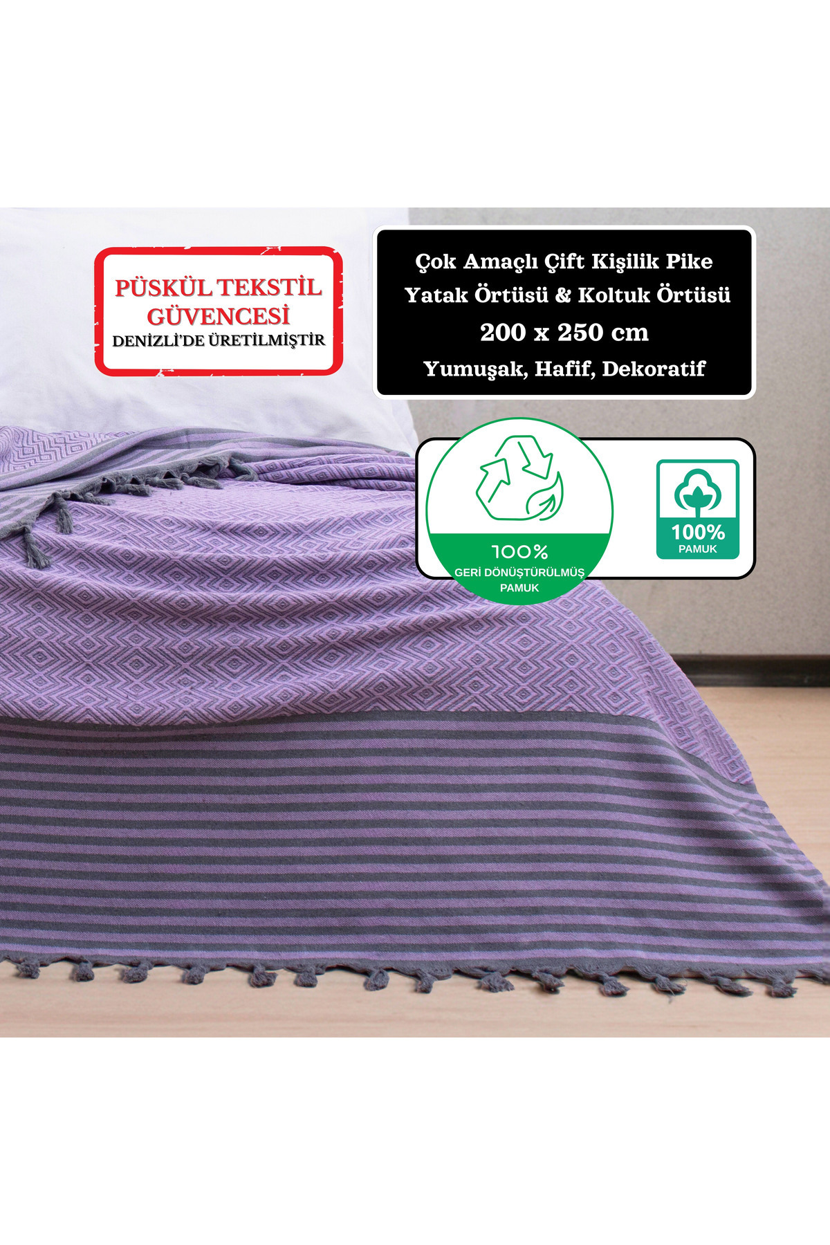 Çok Amaçlı Yatak Örtüsü ve Koltuk Örtüsü - Çift Kişilik 200 X 250 cm, Yumuşak, Hafif, Dekoratif Pike Çok Amaçlı Yatak Örtüsü ve Koltuk Örtüsü - Çift Kişilik 200 X 250 cm, Yumuşak, Hafif, Dekoratif Pike ATIL-PIKE-MSTK-CIZGL تک سایز
