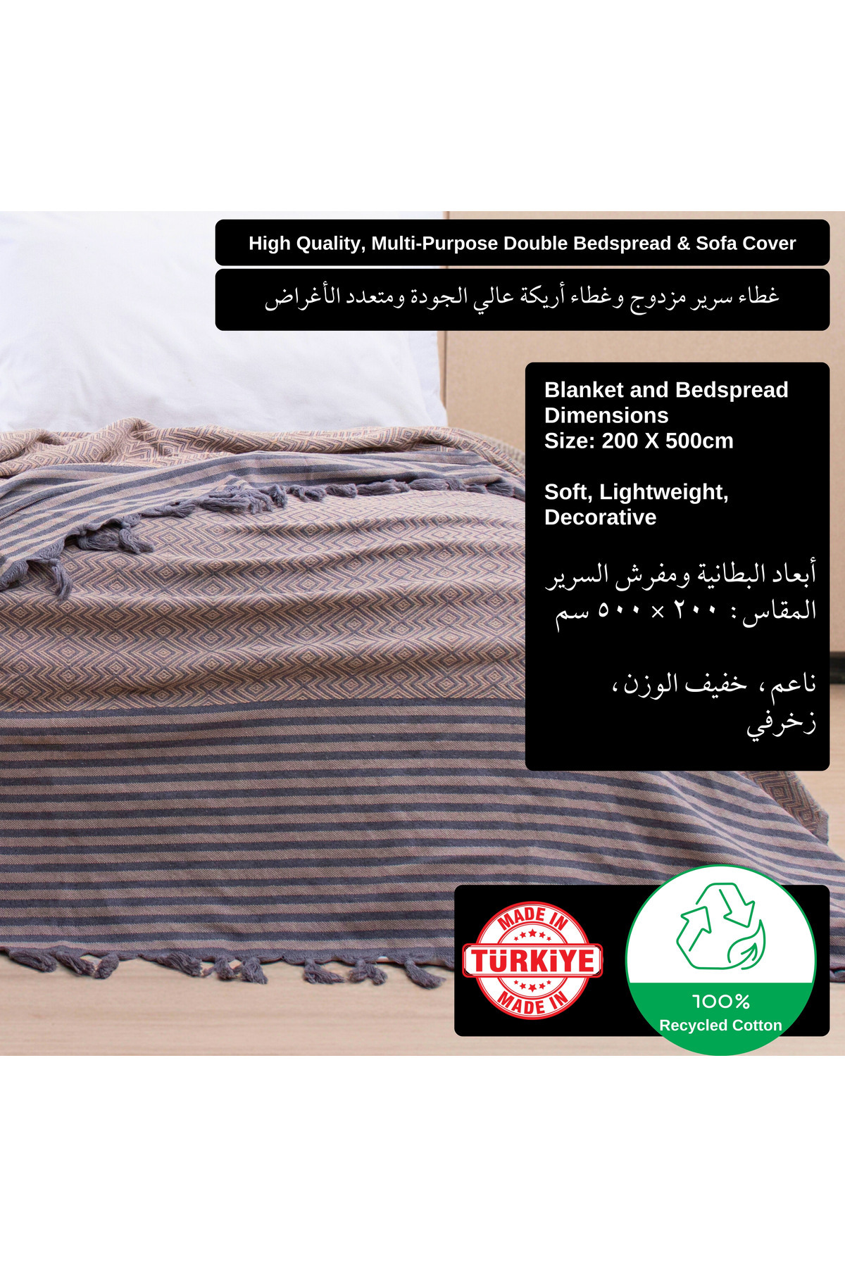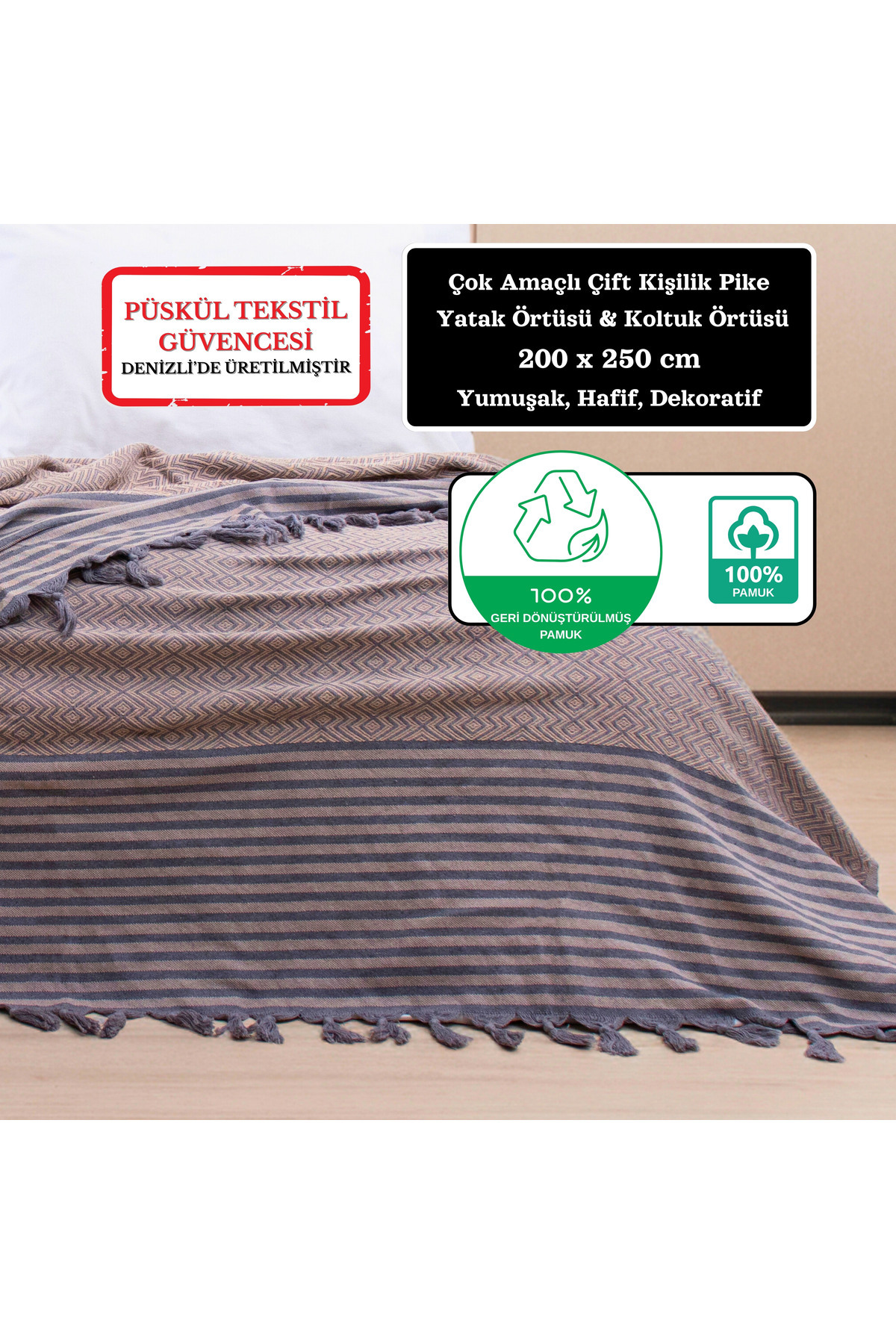Çok Amaçlı Yatak Örtüsü ve Koltuk Örtüsü - Çift Kişilik 200 X 250 cm, Yumuşak, Hafif, Dekoratif Pike Çok Amaçlı Yatak Örtüsü ve Koltuk Örtüsü - Çift Kişilik 200 X 250 cm, Yumuşak, Hafif, Dekoratif Pike ATIL-PIKE-MSTK-CIZGL تک سایز