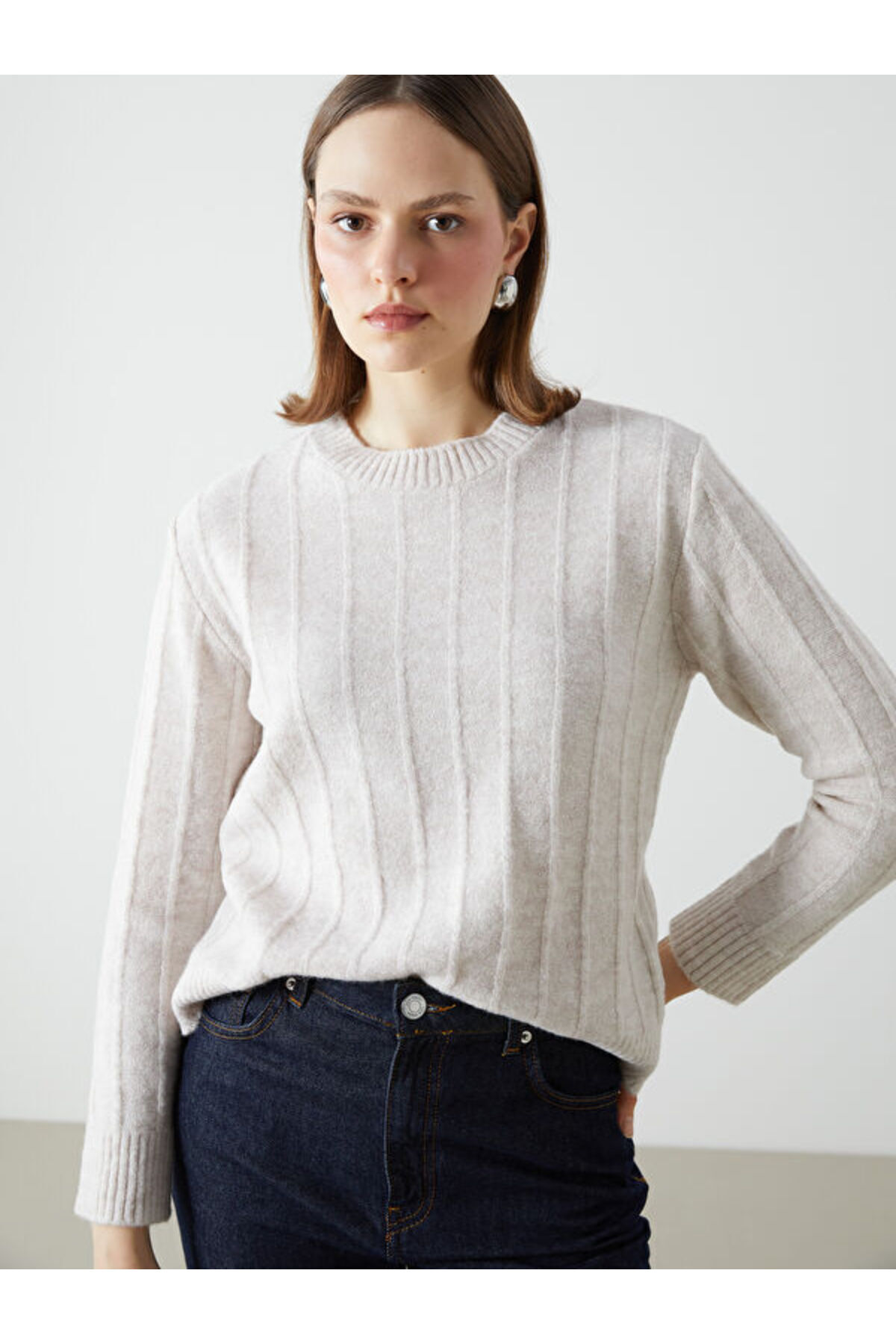 Bej Bisiklet Yaka Çizgili Kadın Triko Kazak Bej Bisiklet Yaka Çizgili Kadın Triko Kazak W4LY81Z8-MXN 2XL