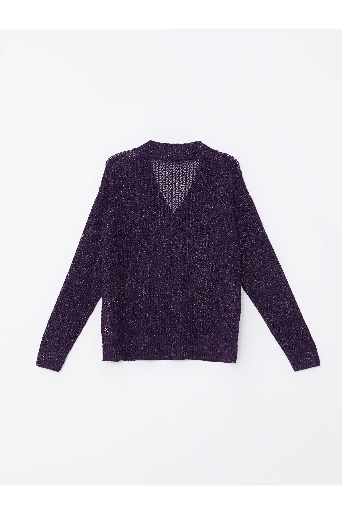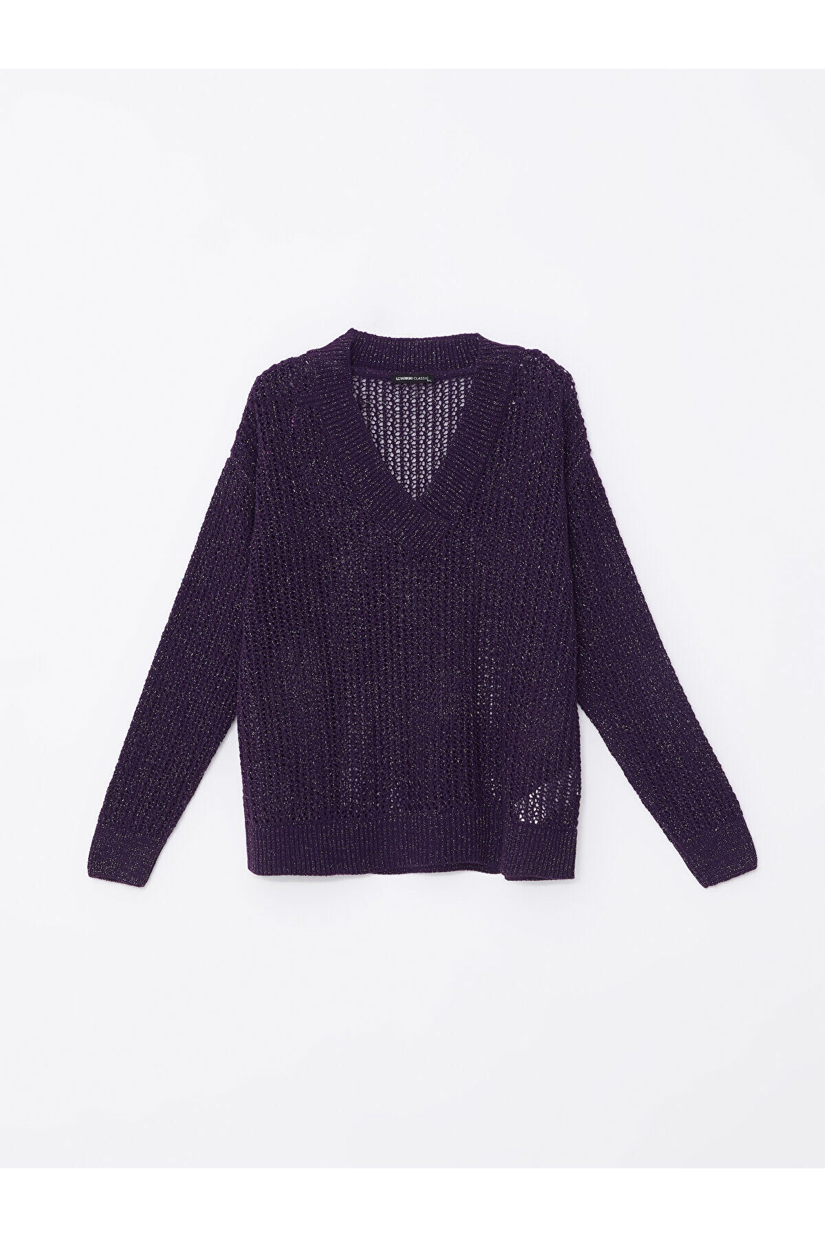 Mor V Yaka Ajurlu Uzun Kollu Kadın Triko Kazak Mor V Yaka Ajurlu Uzun Kollu Kadın Triko Kazak W4CC80Z8-HHZ XS-S