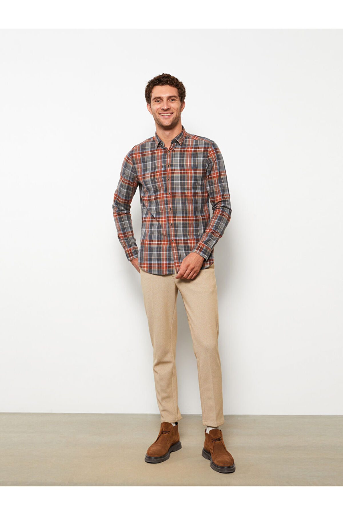Turuncu Slim Fit Uzun Kollu Ekose Erkek Gömlek Turuncu Slim Fit Uzun Kollu Ekose Erkek Gömlek W22591Z8-LND 4XL