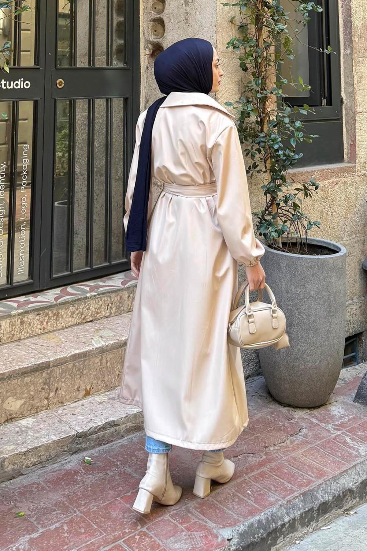 Kol Elastik Detaylı Trençkot Taş Kol Elastik Detaylı Trençkot Taş ESK174 L/XL
