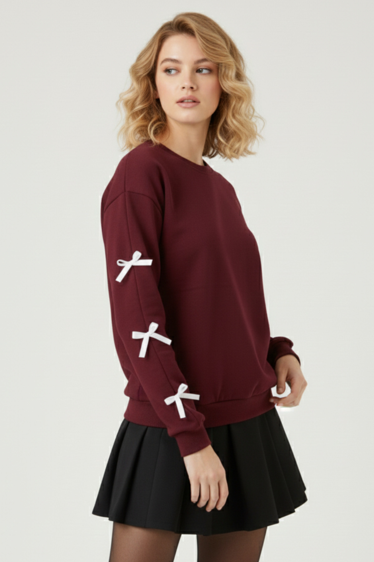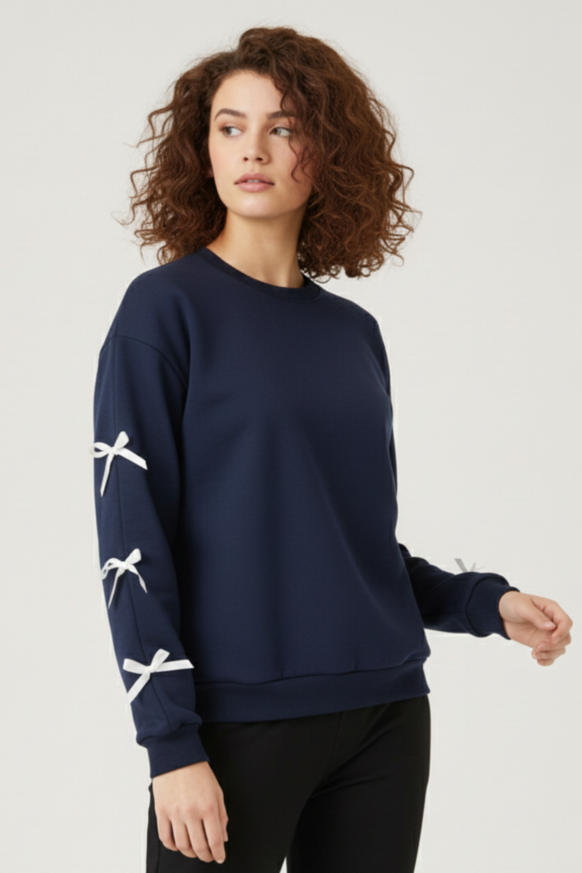 Kurdele Detaylı Kadın Bisiklet Yaka Sweatshirt Şık ve Rahat Oversize Model Kurdele Detaylı Kadın Bisiklet Yaka Sweatshirt Şık ve Rahat Oversize Model MLK-STAR XL