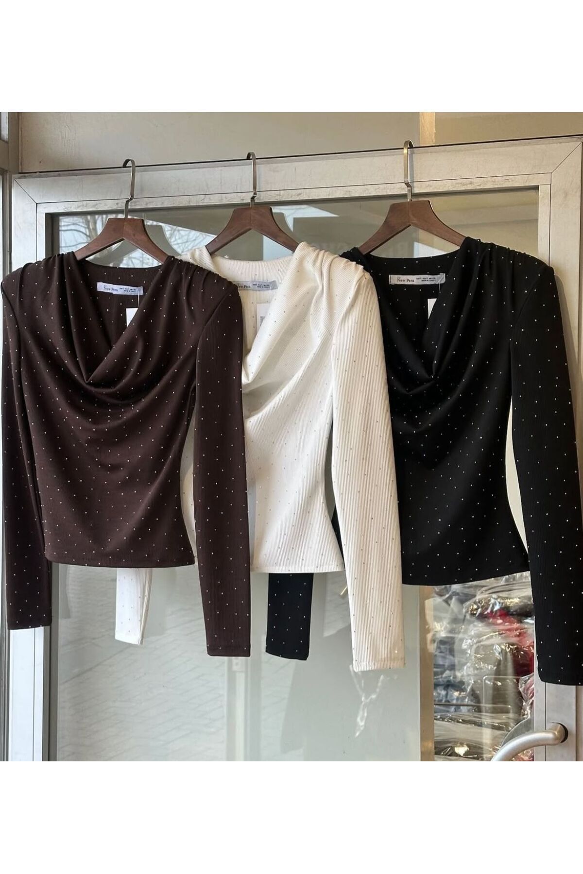 Taşlı Bel Detaylı Degaje Yaka Kadın Bluz Taşlı Bel Detaylı Degaje Yaka Kadın Bluz GKBL13 XL
