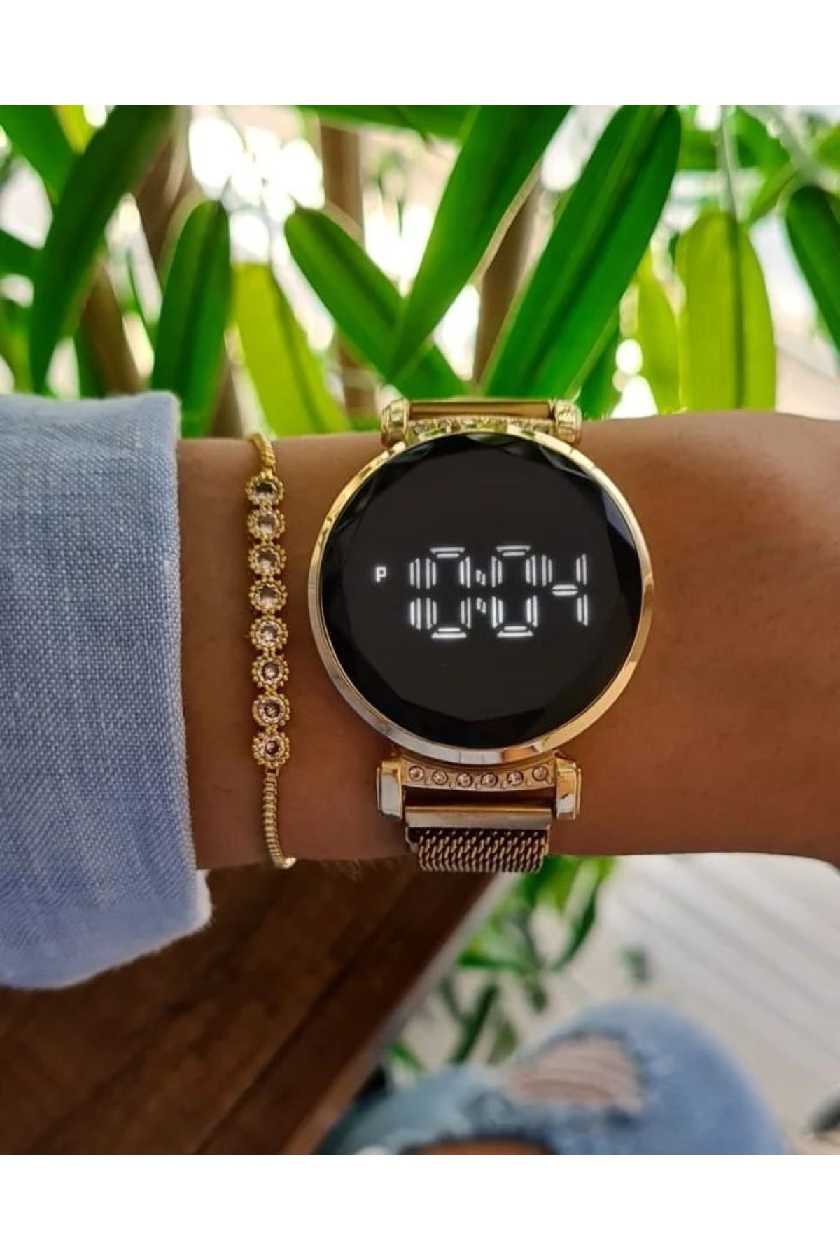 Altın Kadın Çelik Dijital Dokunmatik Ekran Kol Saati Altın Kadın Çelik Dijital Dokunmatik Ekran Kol Saati ÇENÇEN284957 تک سایز
