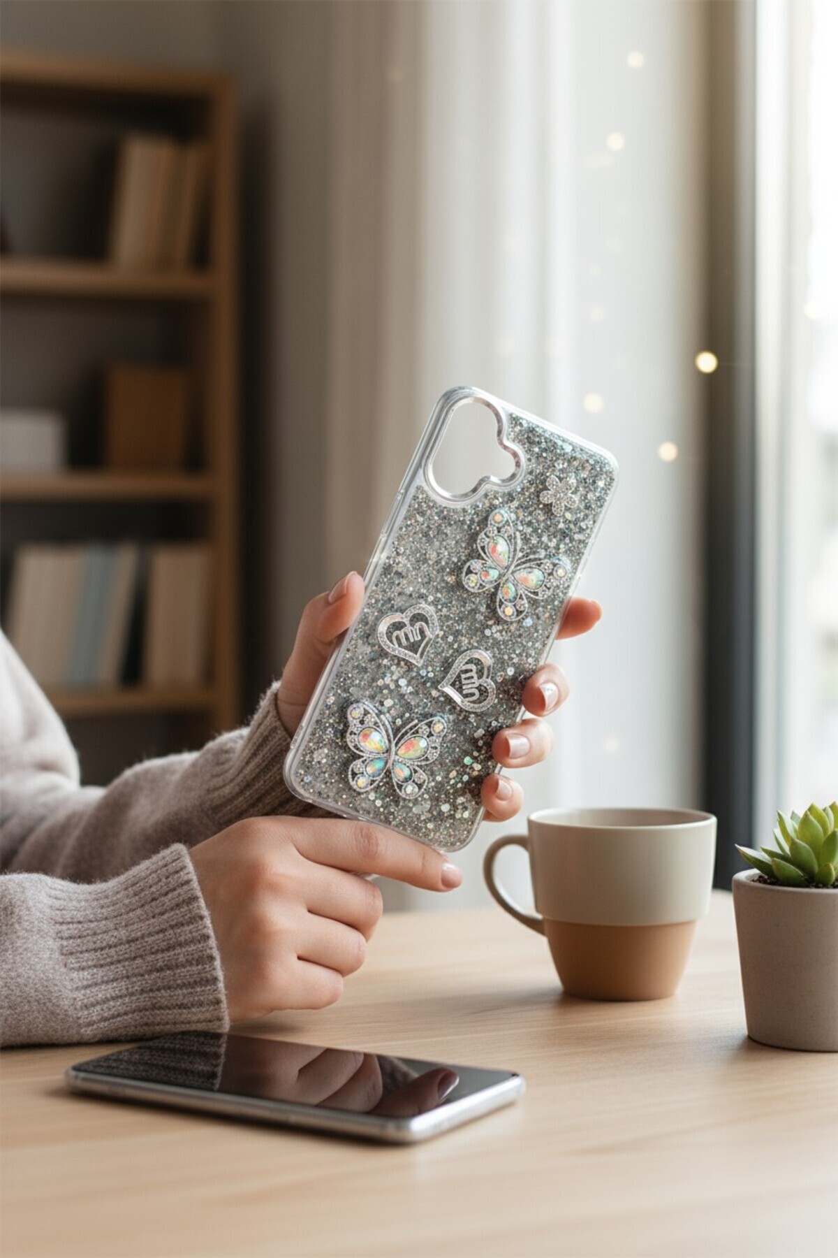 Samsung Galaxy A07 Airbag Tasarımlı Kelebek ve Kalp Kabartmalı Simli Taşlı BTU Şeffaf Silikon Kapak Samsung Galaxy A07 Airbag Tasarımlı Kelebek ve Kalp Kabartmalı Simli Taşlı BTU Şeffaf Silikon Kapak 34t4wt5465 تک سایز