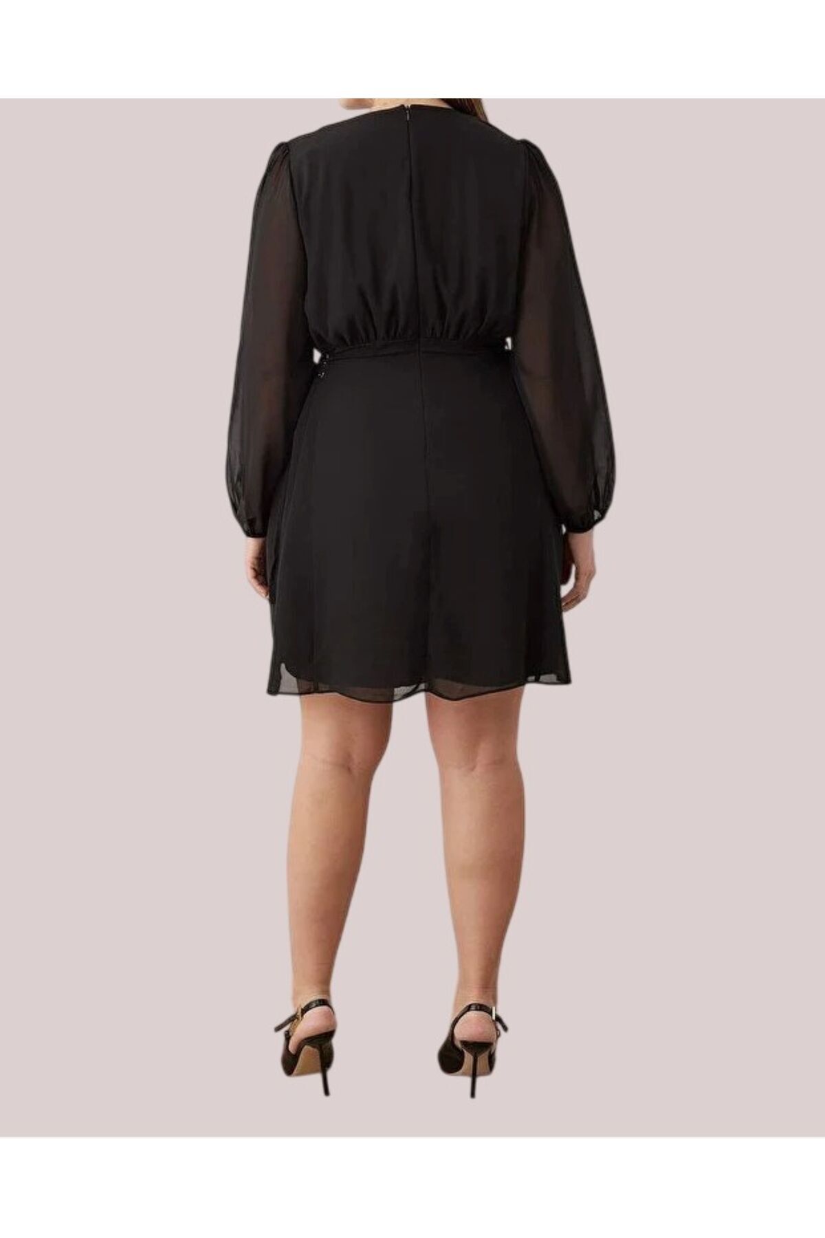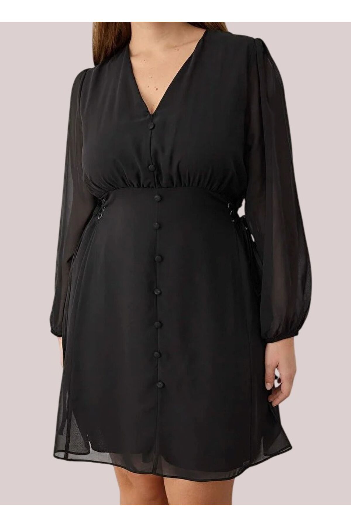 Siyah Kuşgözü Detaylı Düğmeli Astarlı Şifon Dokuma Elbise Siyah Kuşgözü Detaylı Düğmeli Astarlı Şifon Dokuma Elbise 0015 50