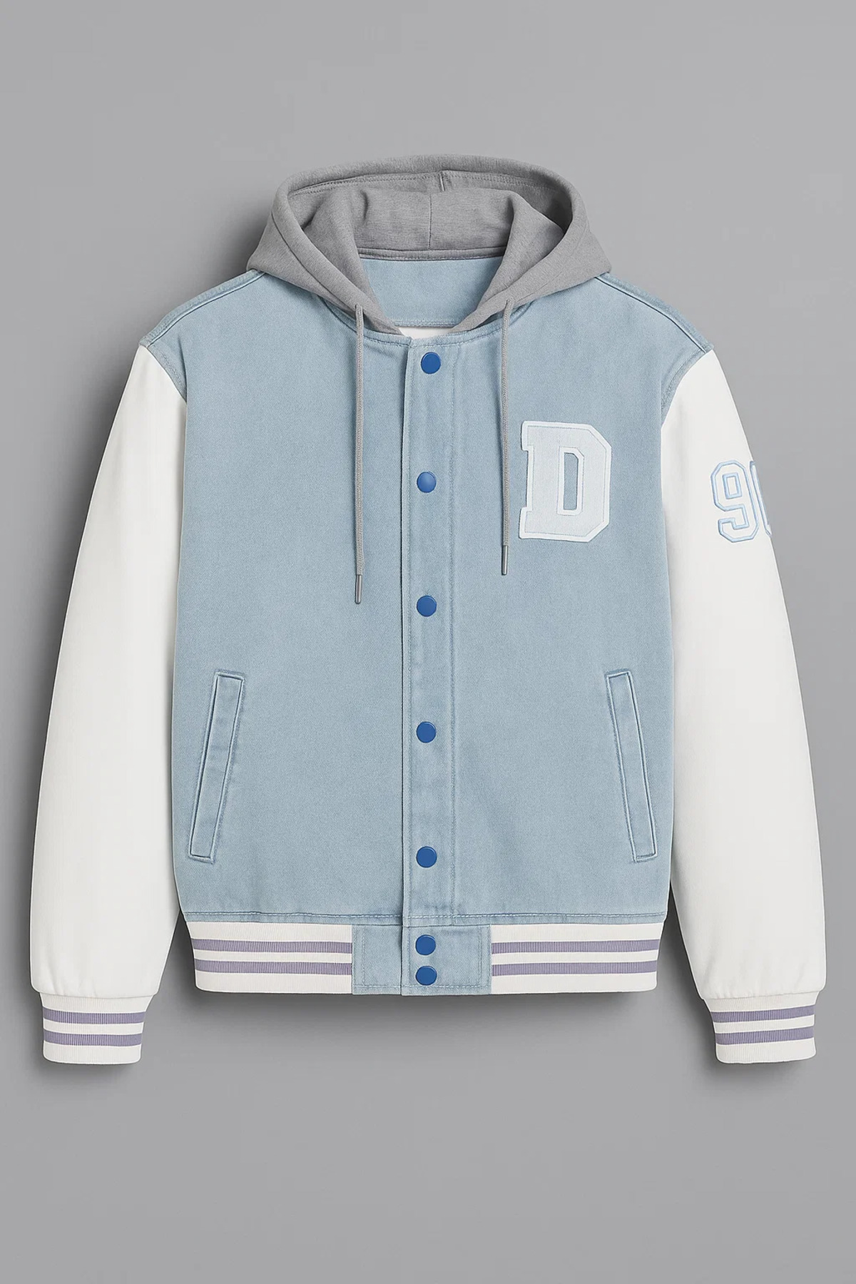 Erkek Oversize Kapşonlu Buz Mavi Kot Kolej Mont Erkek Oversize Kapşonlu Buz Mavi Kot Kolej Mont Mont-981DMJG 2XL