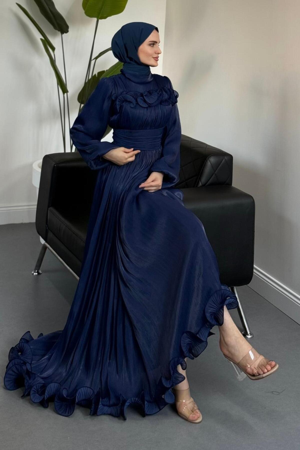 Maryam Altı Ve Göğüs Kısmı Fırfırlı Janjan Abiye Lacivert Maryam Altı Ve Göğüs Kısmı Fırfırlı Janjan Abiye Lacivert 48231 44