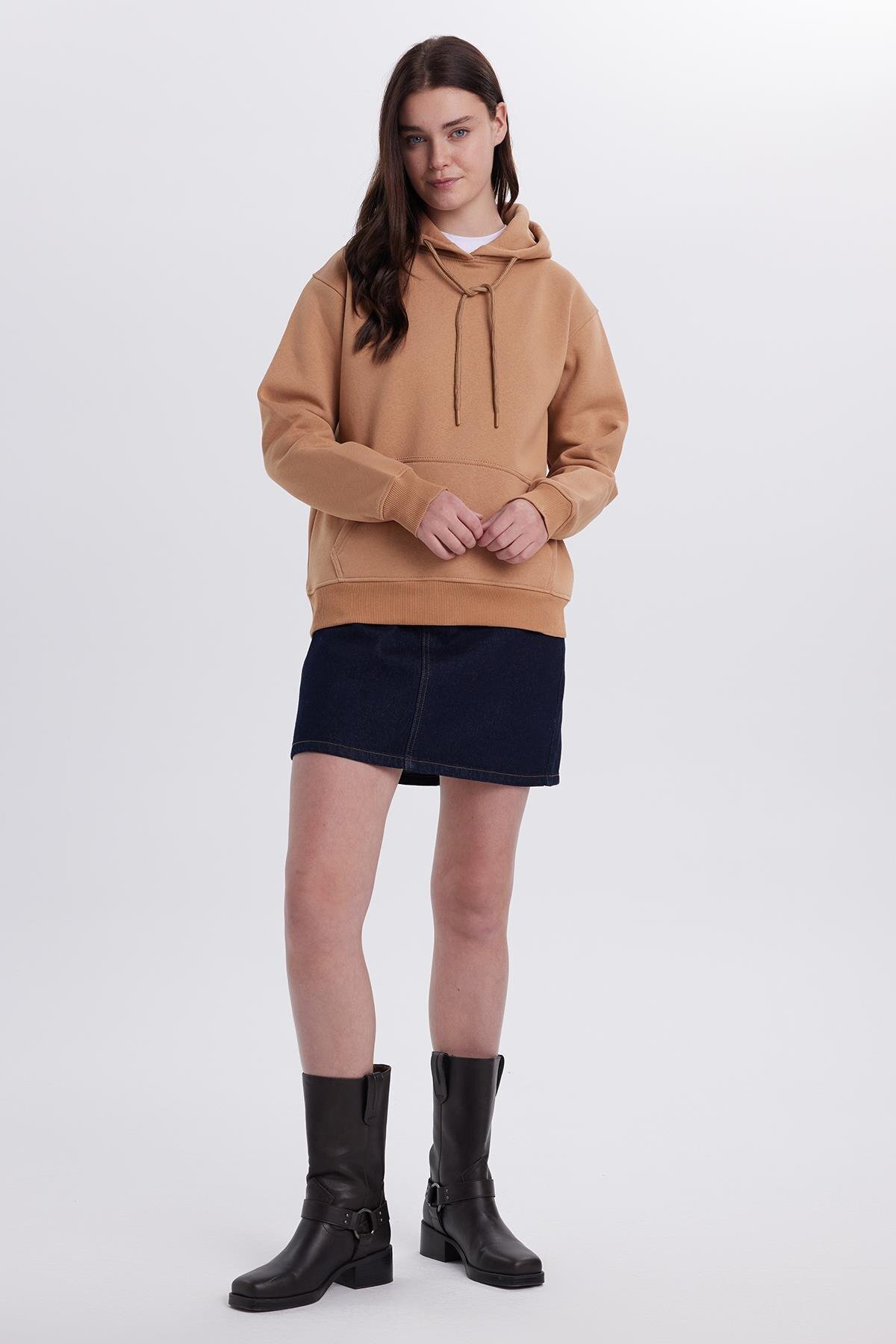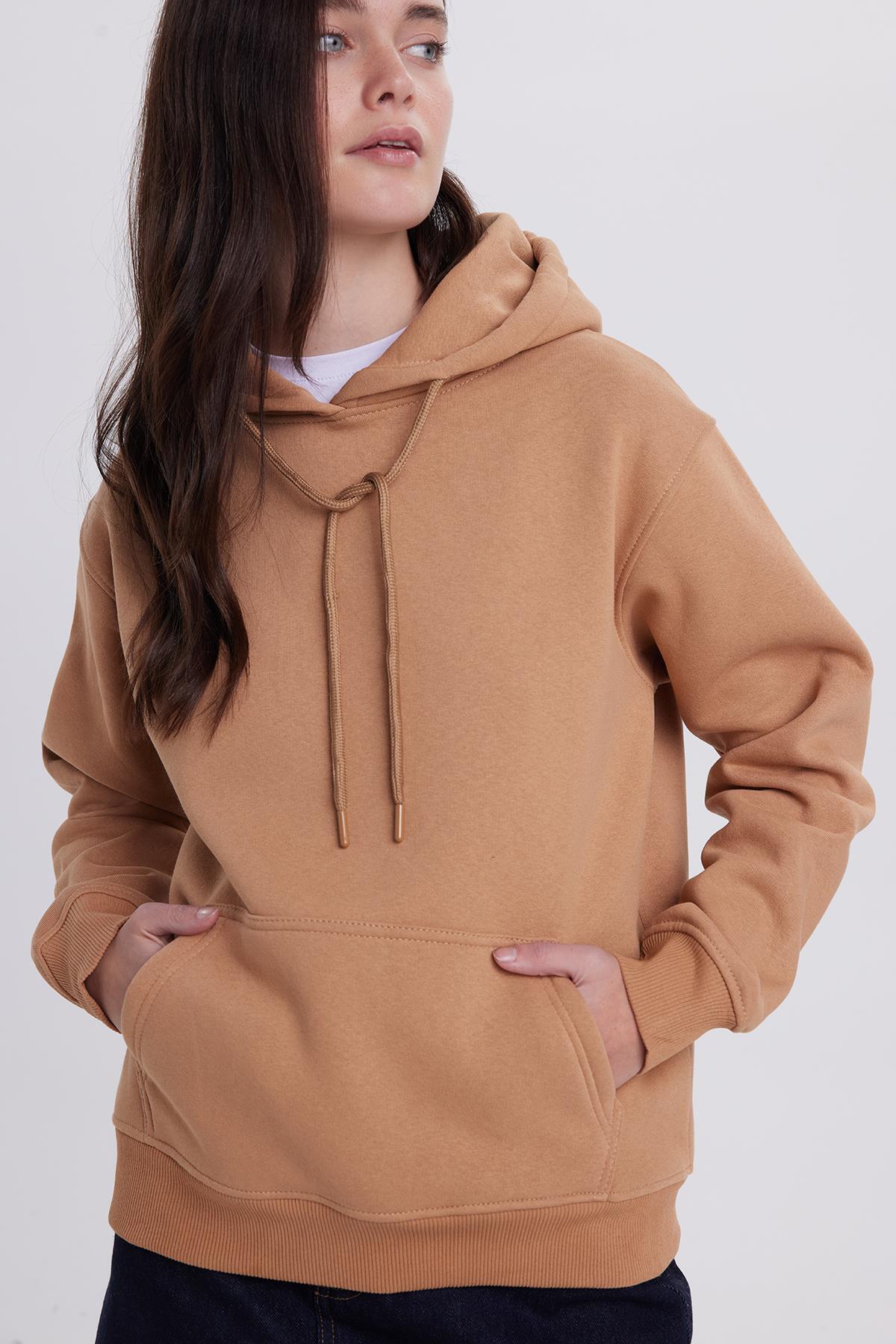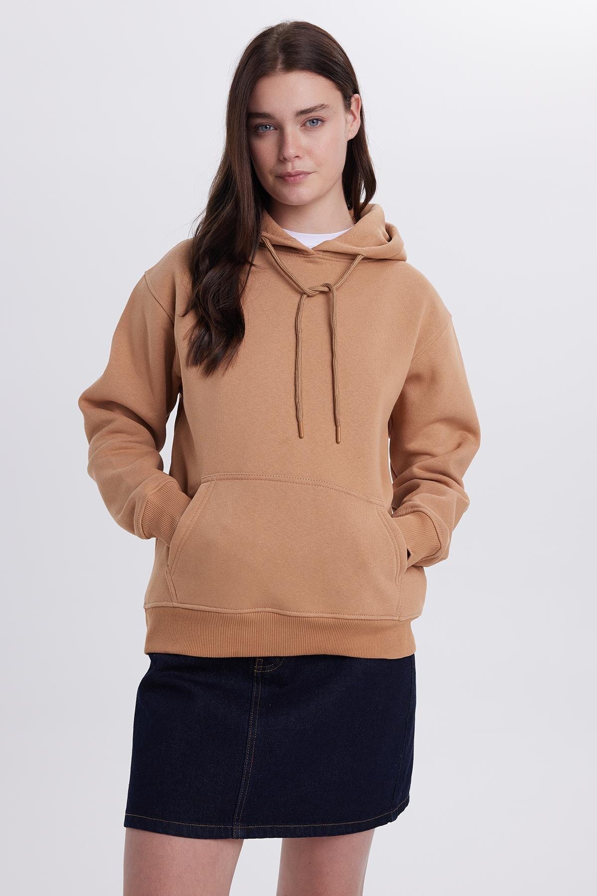 Kadın Relax Fit Rahat Kesim Pamuklu Kapüşonlu Kanguru Cepli Kiremit Sweatshirt Kadın Relax Fit Rahat Kesim Pamuklu Kapüşonlu Kanguru Cepli Kiremit Sweatshirt SW250024 XL
