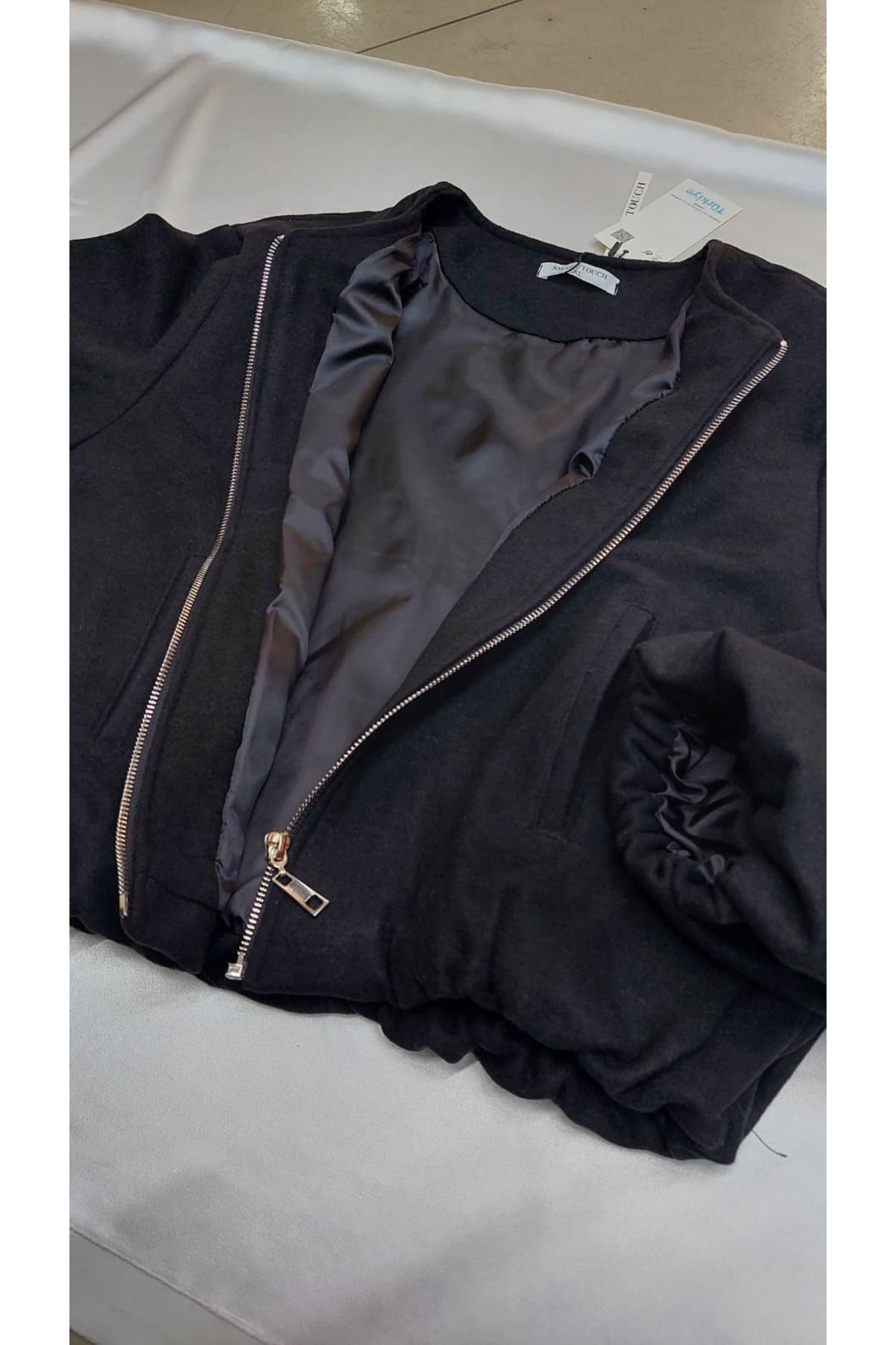 Rahat Kalıp Kaşe Kumaş Kadın Fermuarlı Siyah Bomber Ceket Rahat Kalıp Kaşe Kumaş Kadın Fermuarlı Siyah Bomber Ceket RKKKKFBC2025 XL