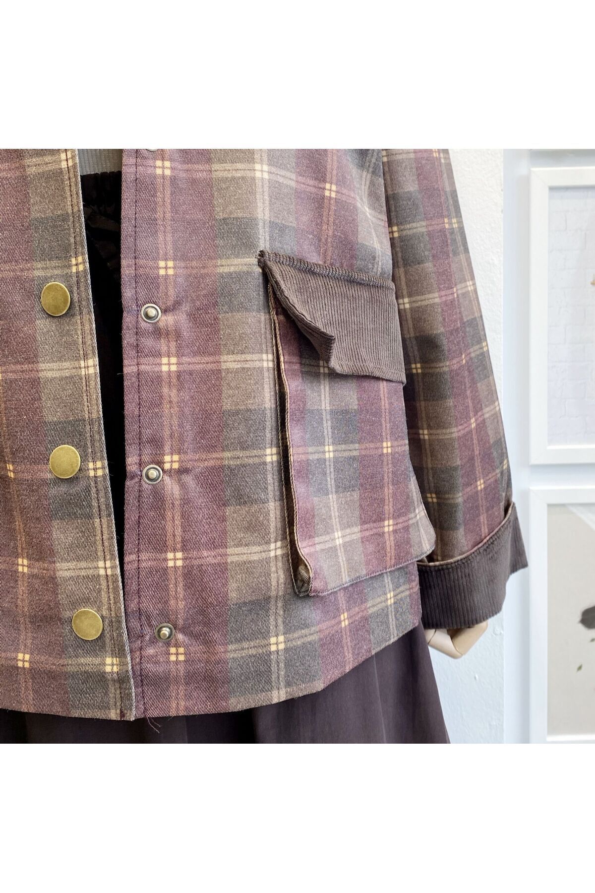Bordo Ekoseli Çıtçıt Düğmeli Ceket Bordo Ekoseli Çıtçıt Düğmeli Ceket A5N3 L