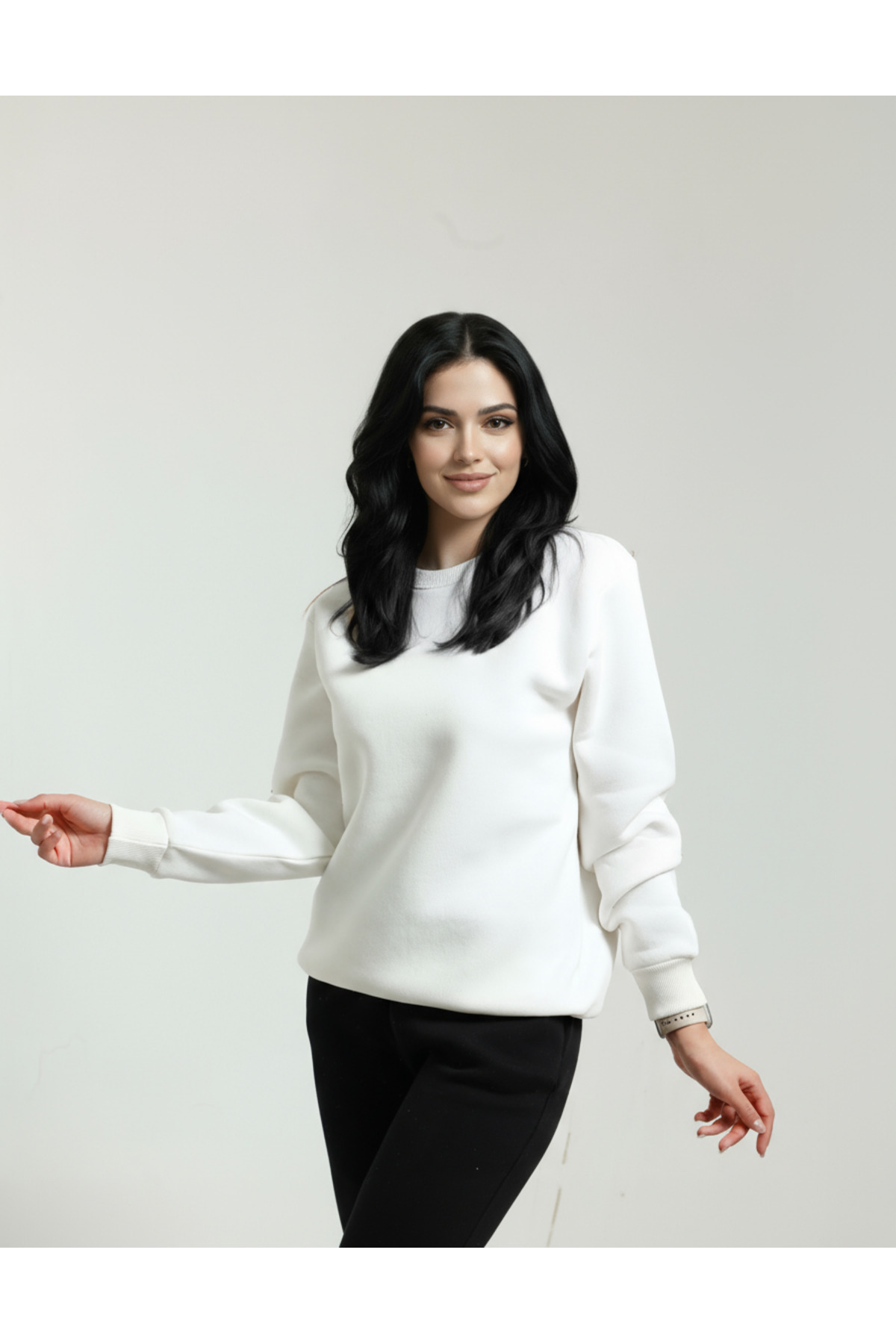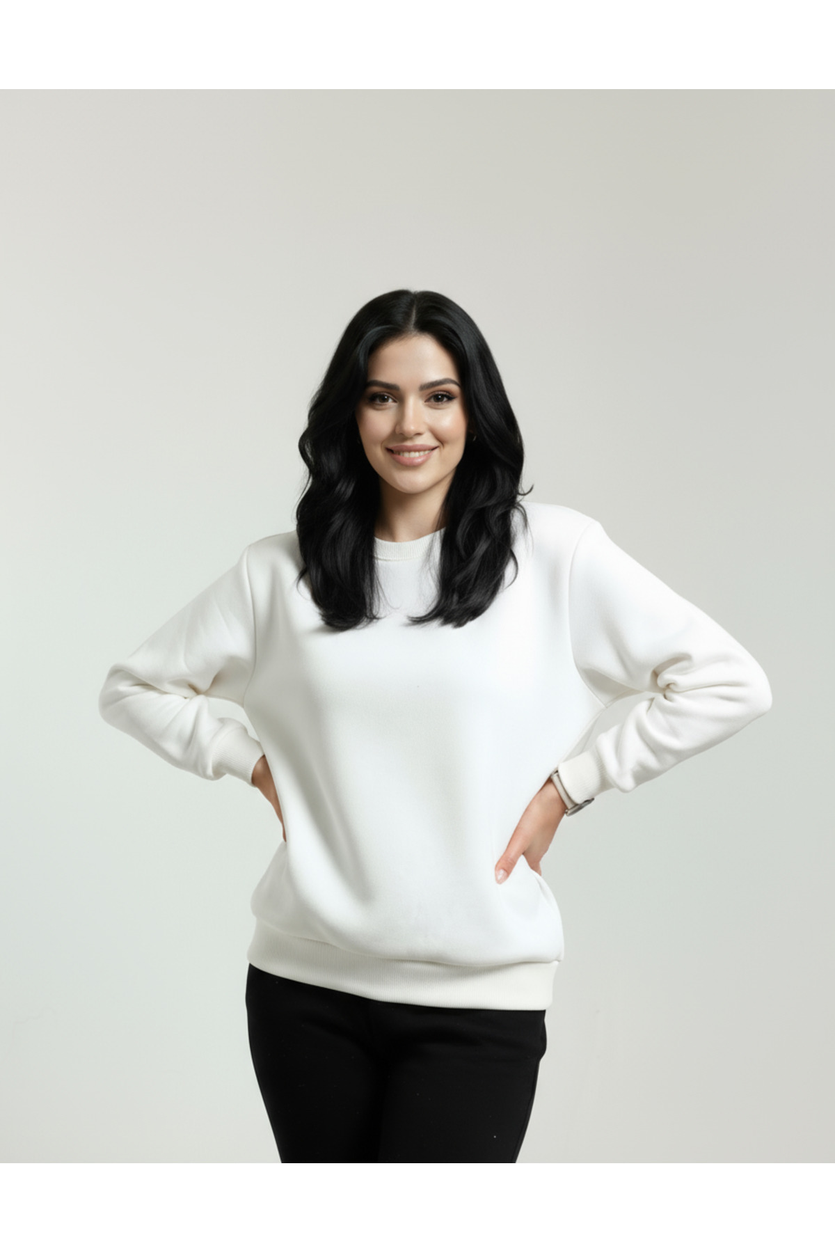 Beyaz Kadın Bisiklet Yaka Sweat Yumuşacık Puf Kumaş Beyaz Kadın Bisiklet Yaka Sweat Yumuşacık Puf Kumaş Bisiklet-yaka-sweat-kadın 2XL