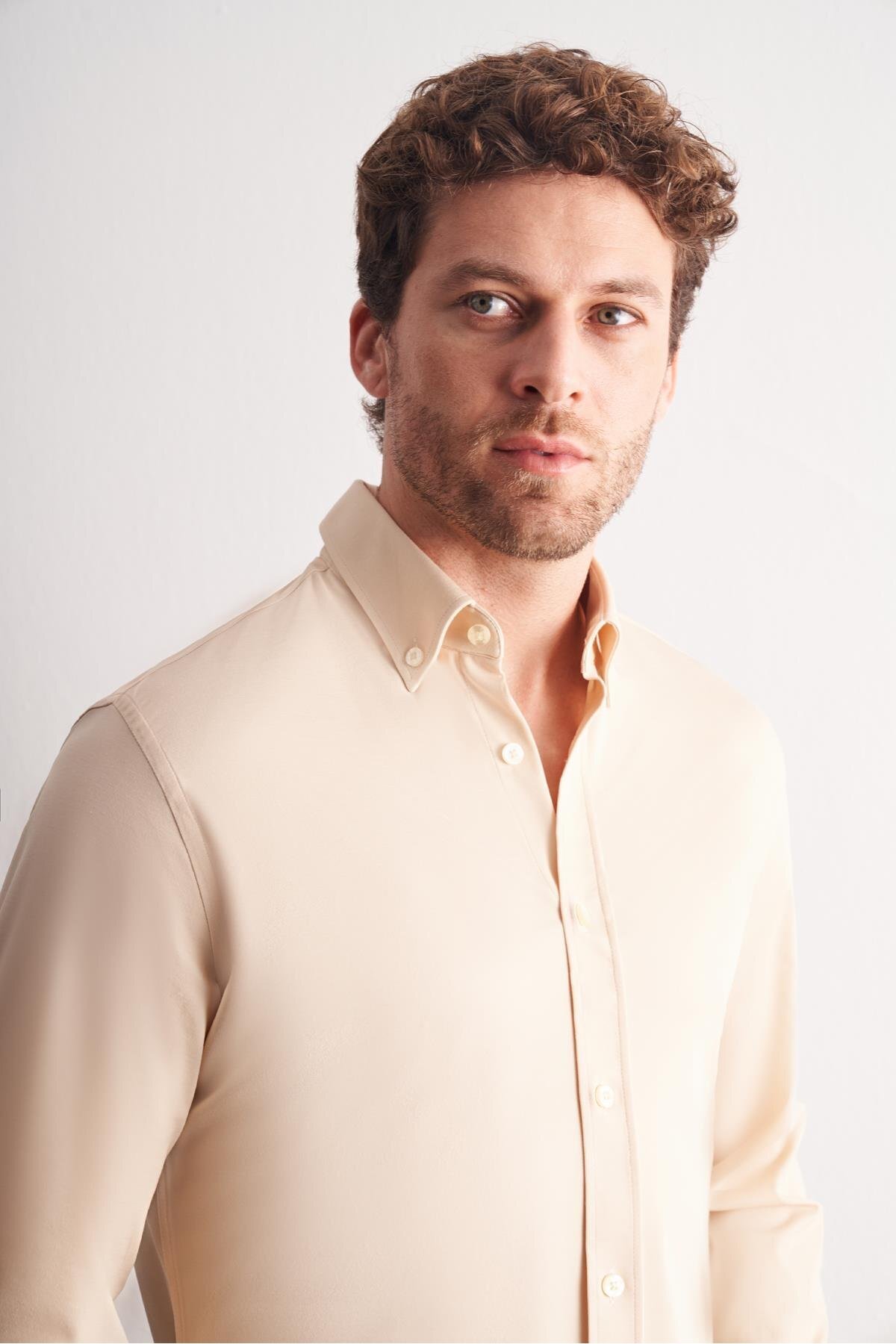 Bej Düğmeli Yaka Örme Uzun Kol Ürün Slim Fit Esnek Gömlek 1004255270 Bej Düğmeli Yaka Örme Uzun Kol Ürün Slim Fit Esnek Gömlek 1004255270 2XL
