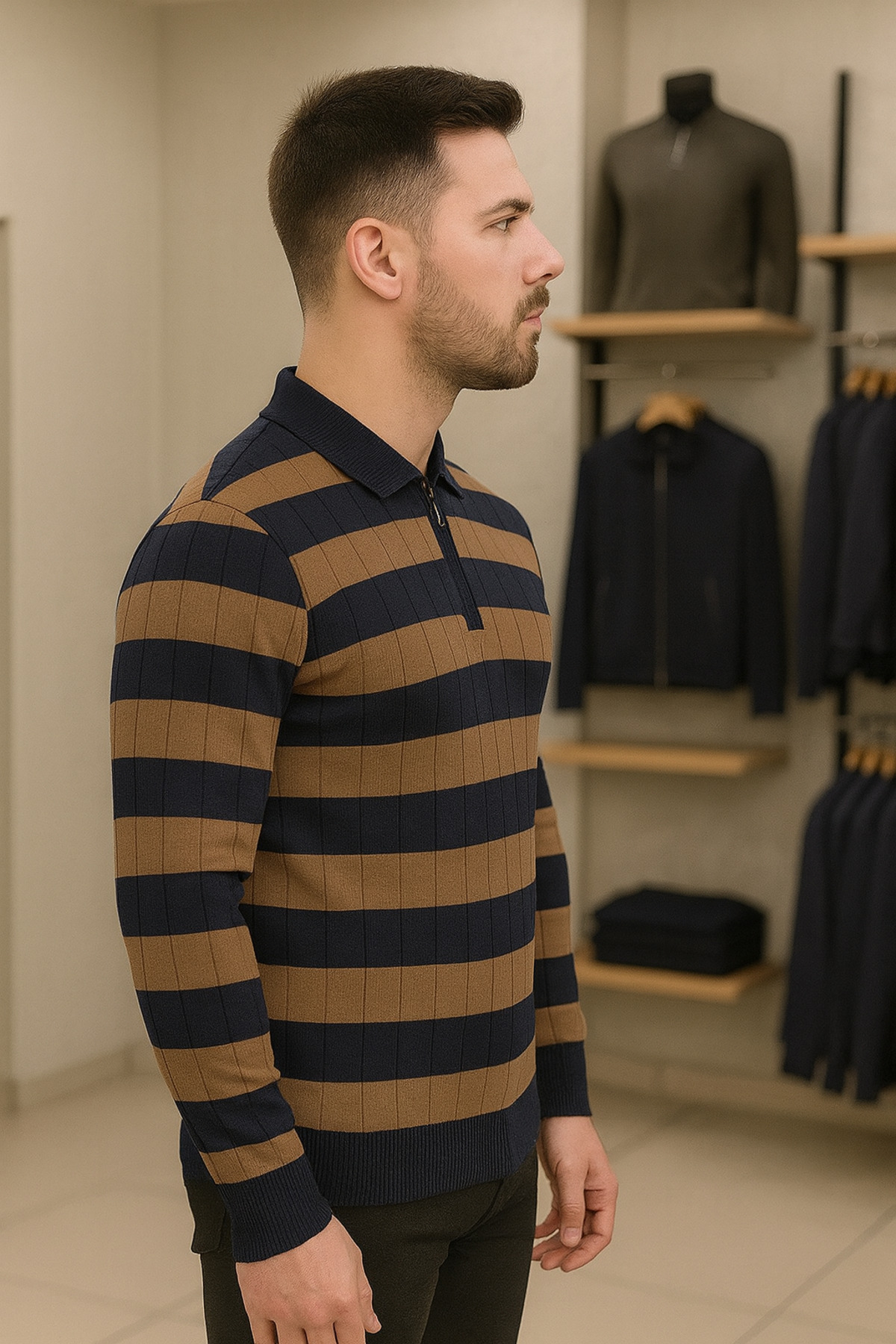 Erkek Günlük Uzun Kollu Kahve Triko Çizgili Kazak Erkek Günlük Uzun Kollu Kahve Triko Çizgili Kazak 7790 2XL