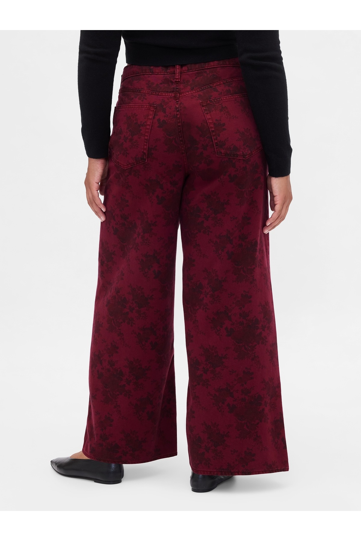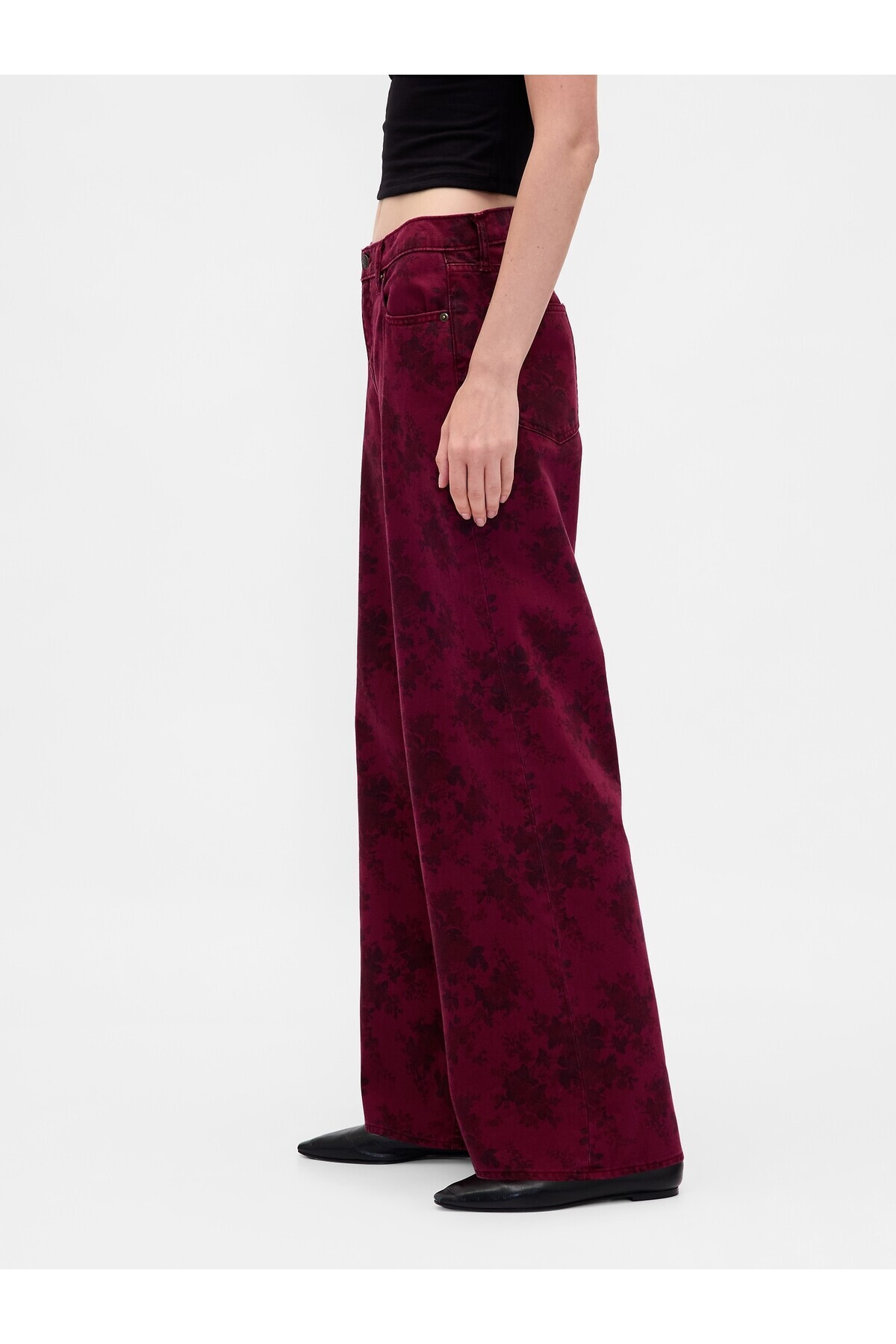 Kadın Bordo Mid Rise Çiçekli Baggy Jean Pantolon Kadın Bordo Mid Rise Çiçekli Baggy Jean Pantolon 815734 27/KISA