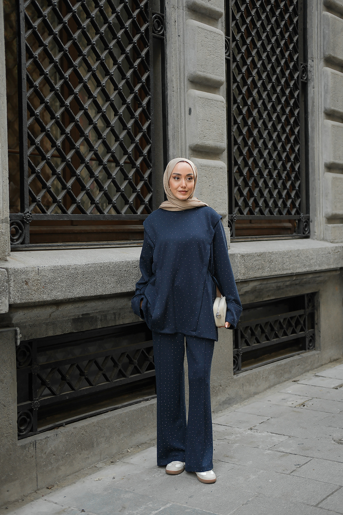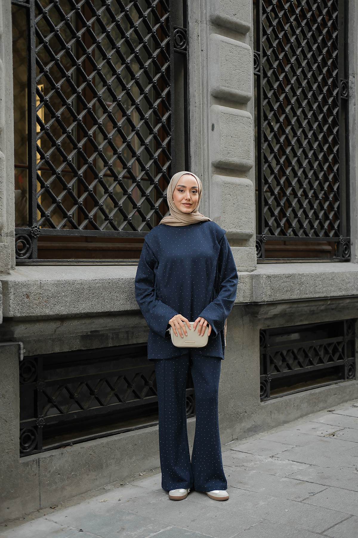 Kadın Taş Detay Beli Lastikli Takım Lacivert Kadın Taş Detay Beli Lastikli Takım Lacivert 182-257 L/XL