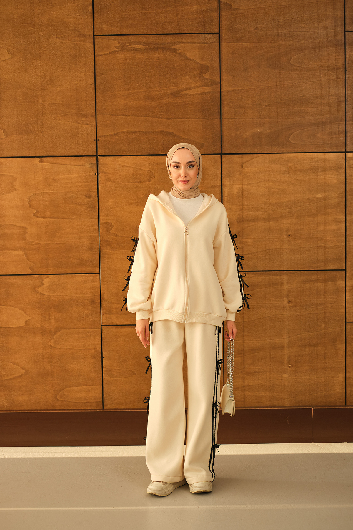 Kadın Kurdele Detaylı Takım Krem Kadın Kurdele Detaylı Takım Krem 284-3011 L/XL
