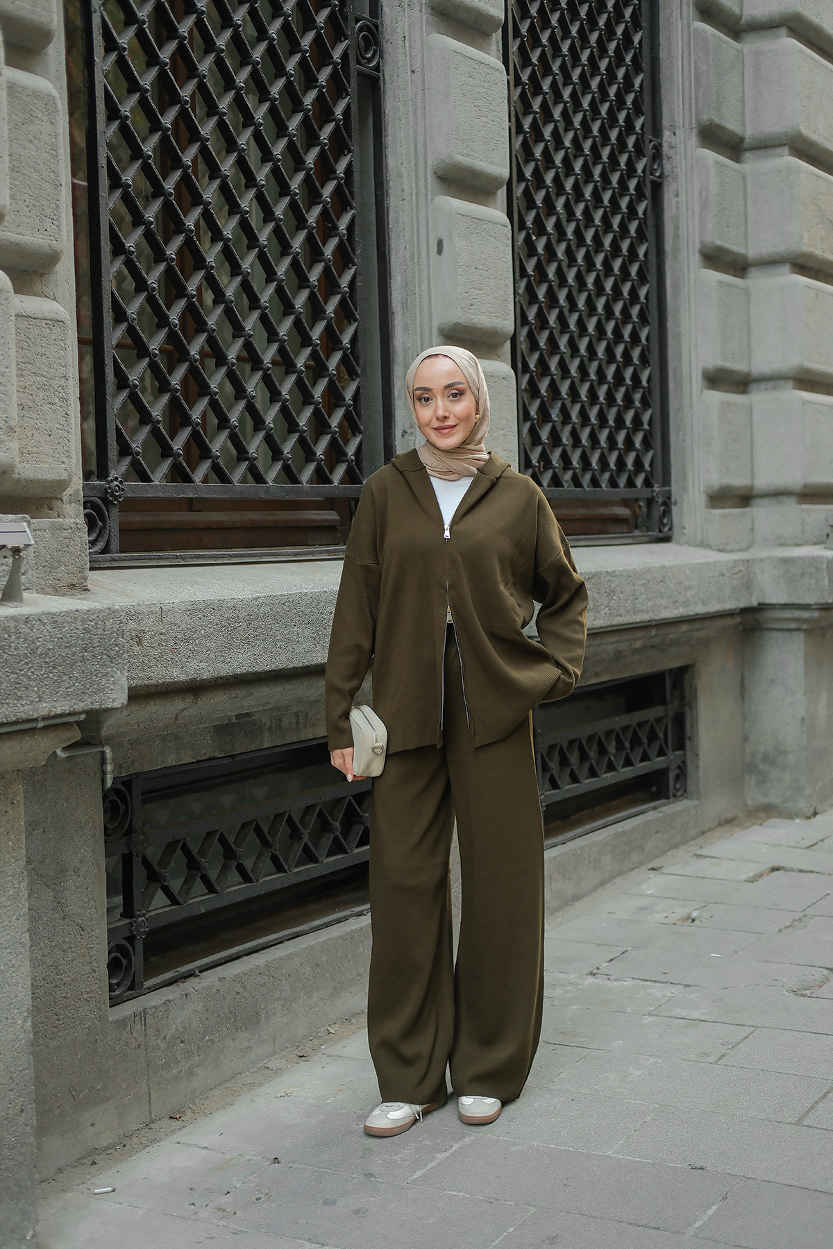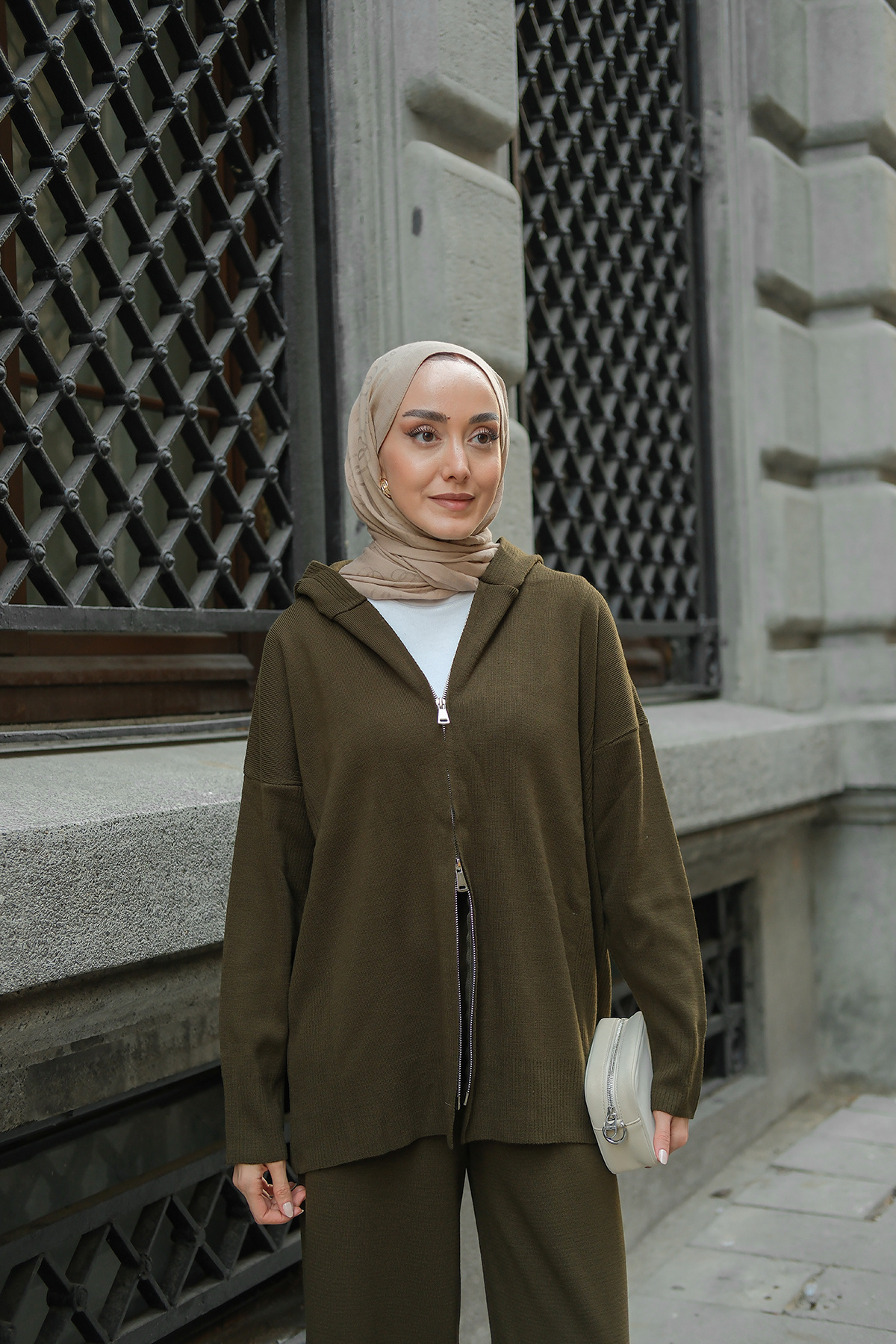 Kadın Kendinden Desenli Triko Takım Haki Yeşil Kadın Kendinden Desenli Triko Takım Haki Yeşil 111-1541 22STD