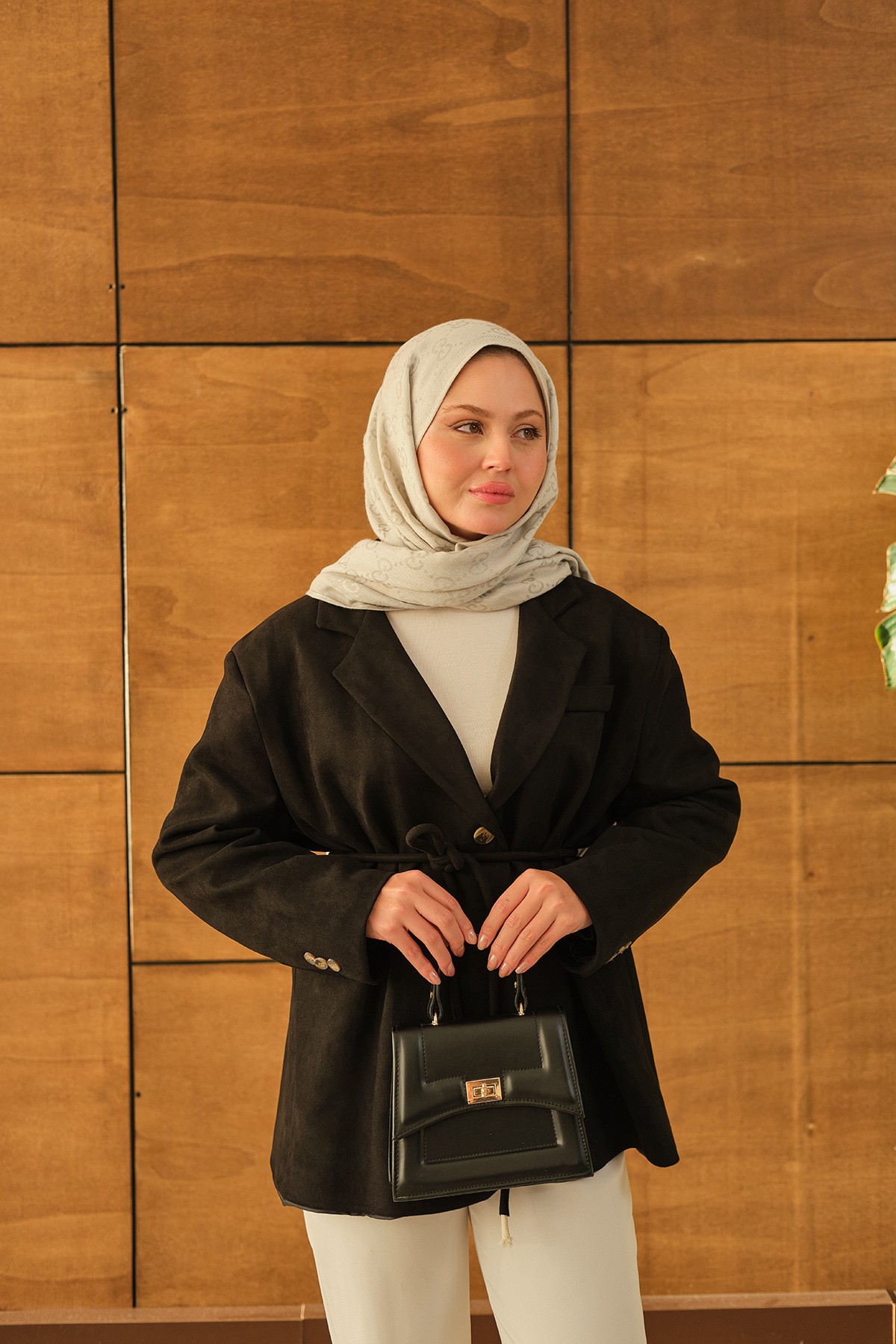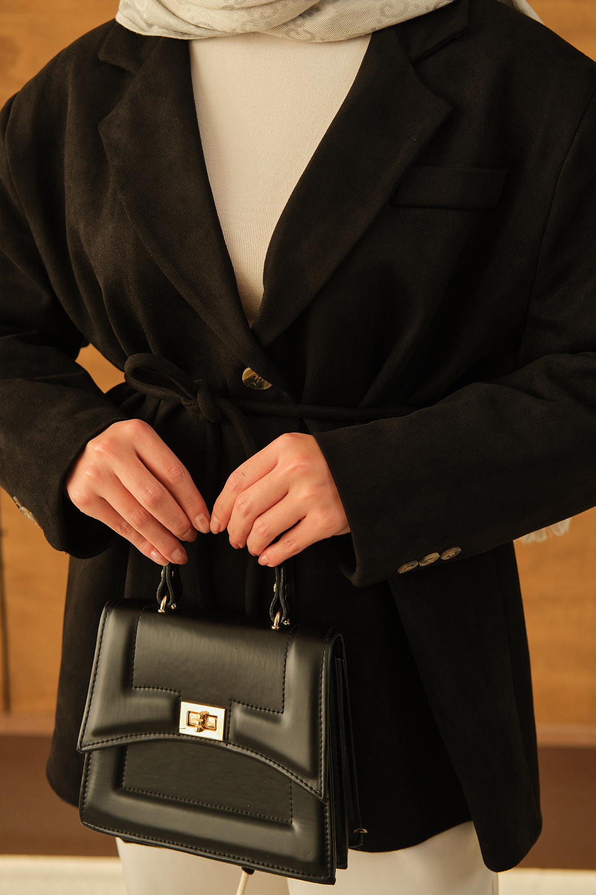 Kadın Bel Bağlamalı Blazer Süet Ceket Siyah Kadın Bel Bağlamalı Blazer Süet Ceket Siyah 112-602.2 Standart