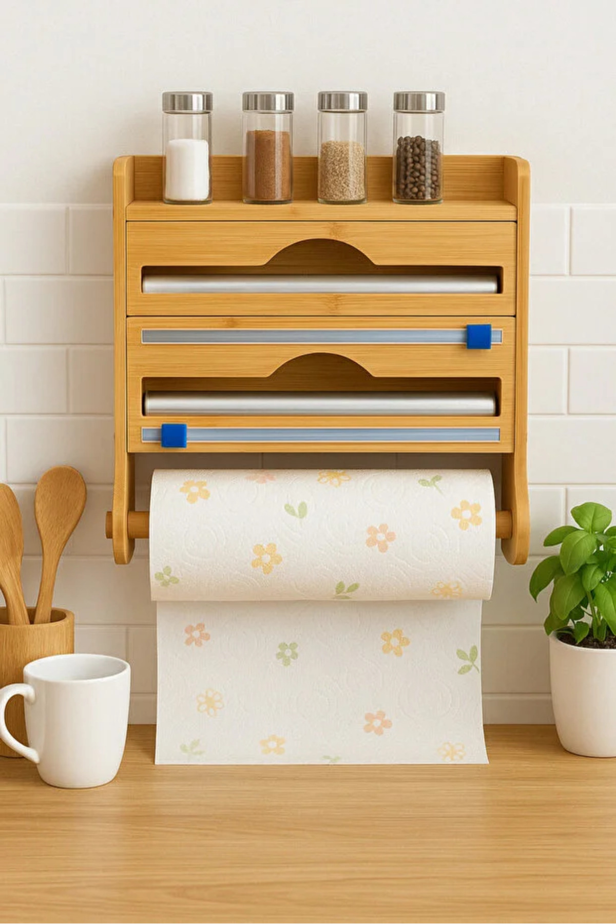 Mutfak için Yapışkanlı Rulo Askısı - Folyo, Streç Film ve Kağıt Havlu Düzenleyici Organizer Mutfak için Yapışkanlı Rulo Askısı - Folyo, Streç Film ve Kağıt Havlu Düzenleyici Organizer 11223344 تک سایز