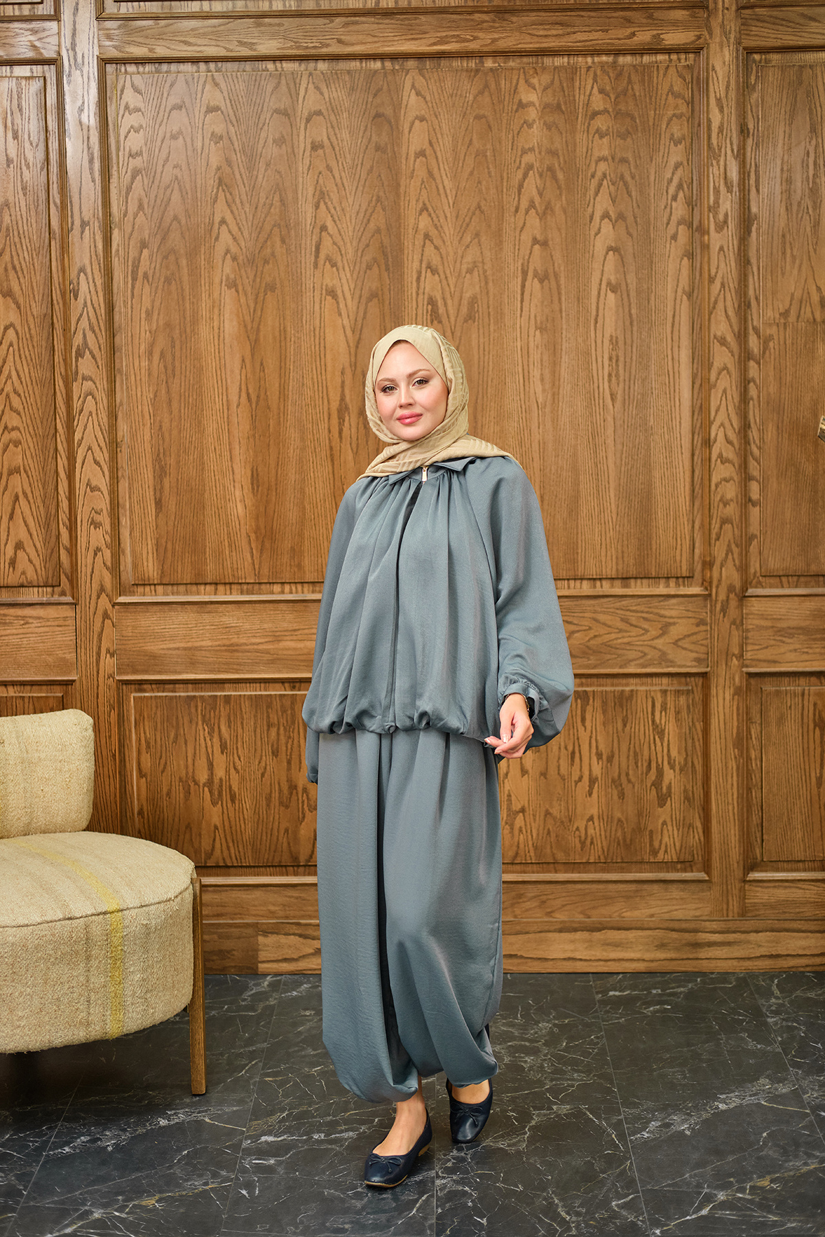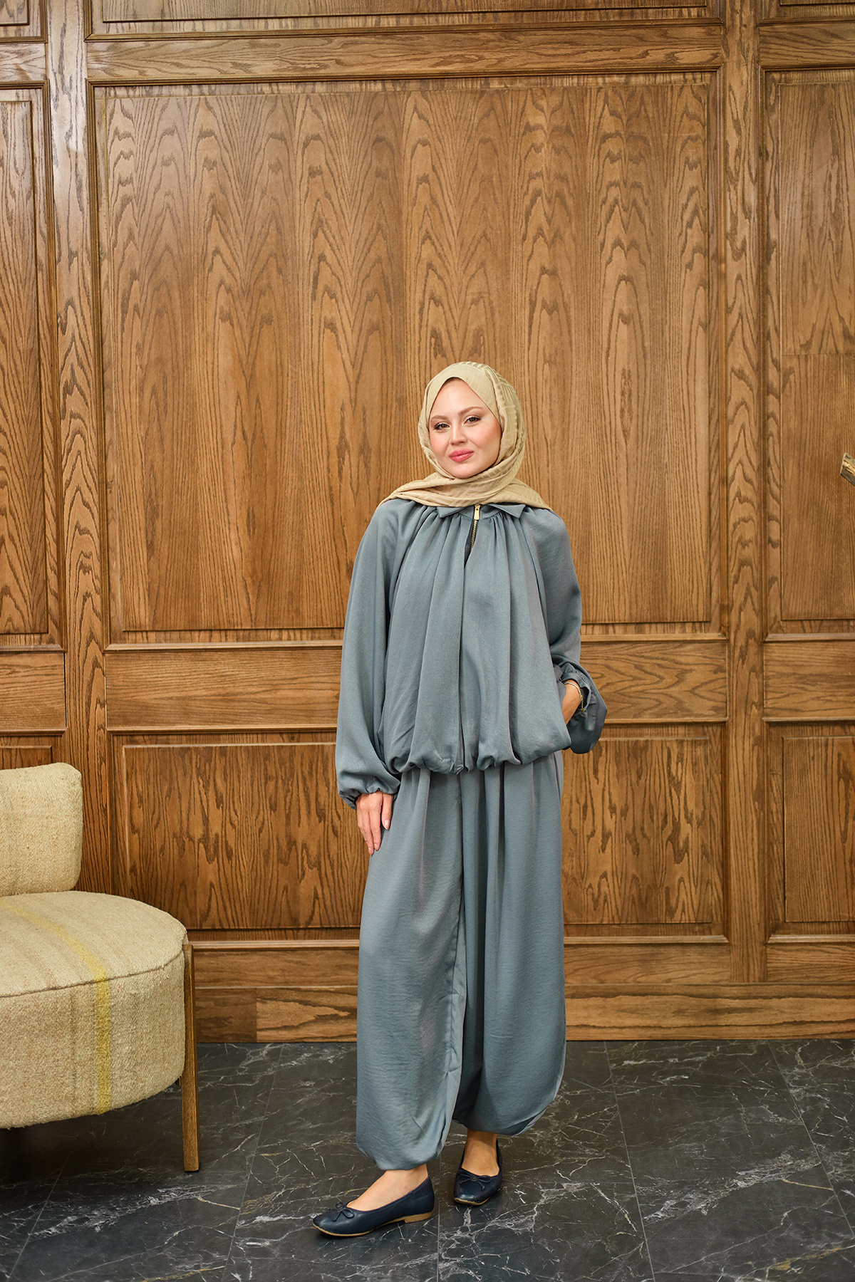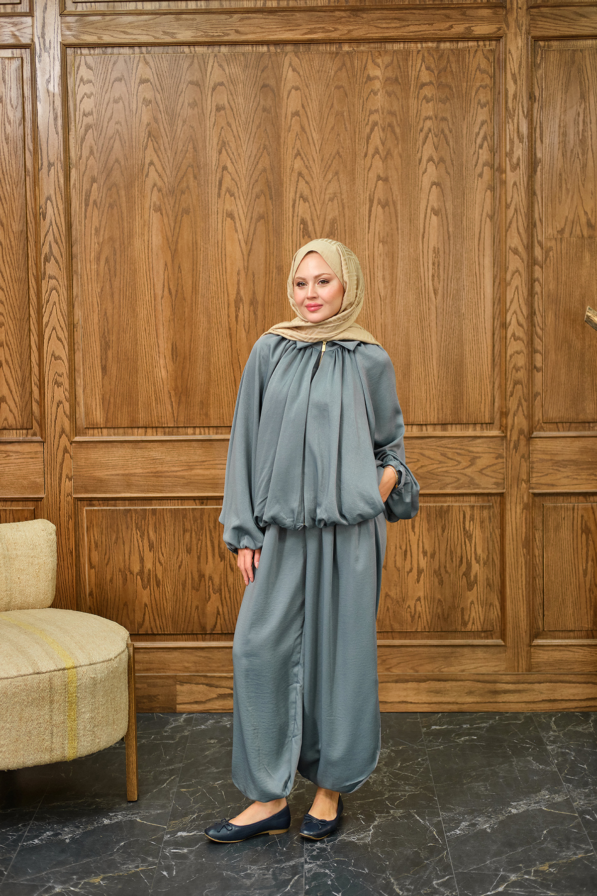Kadın Gizli Fermuar Detay Takım Gri Kadın Gizli Fermuar Detay Takım Gri 283-3015.1 L/XL
