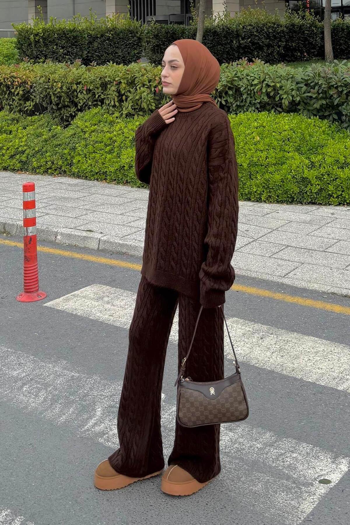 Örgülü Şardonlu Takım Acı Kahverengi Örgülü Şardonlu Takım Acı Kahverengi REY10152 تک سایز