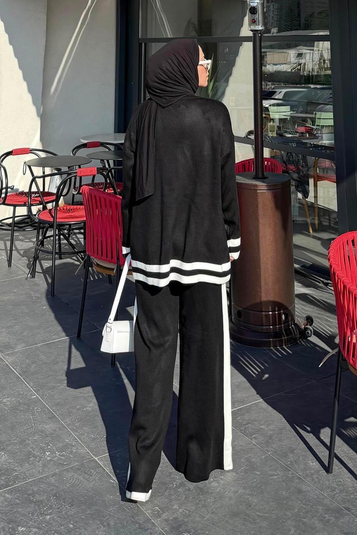 Çizgili Pantolon Triko Tesettür Takım Siyah Çizgili Pantolon Triko Tesettür Takım Siyah REY0021 تک سایز