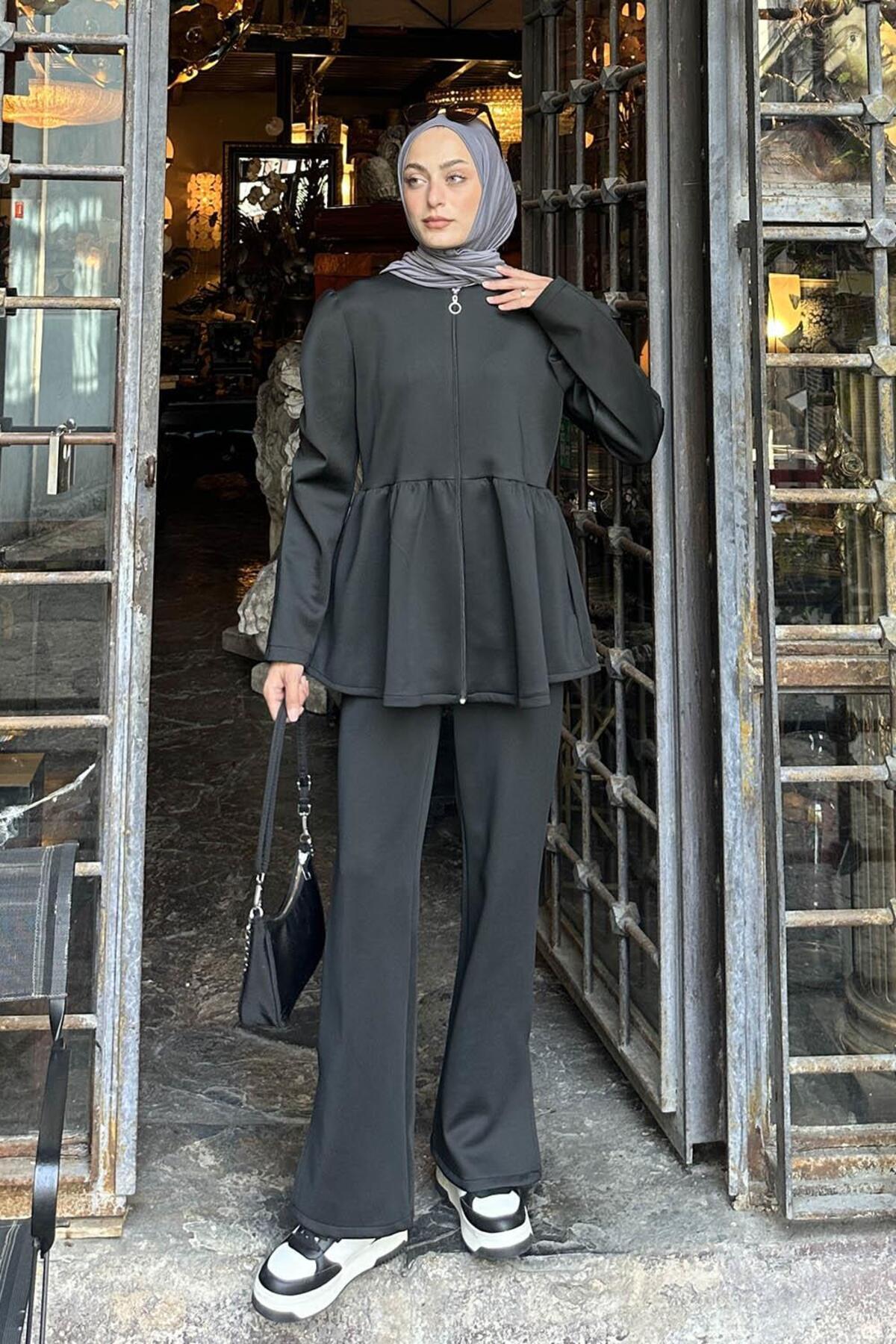 Yan Çizgili Panço Tesettür Takım Siyah Yan Çizgili Panço Tesettür Takım Siyah TYC064E7C70296C0D3B07B700 تک سایز